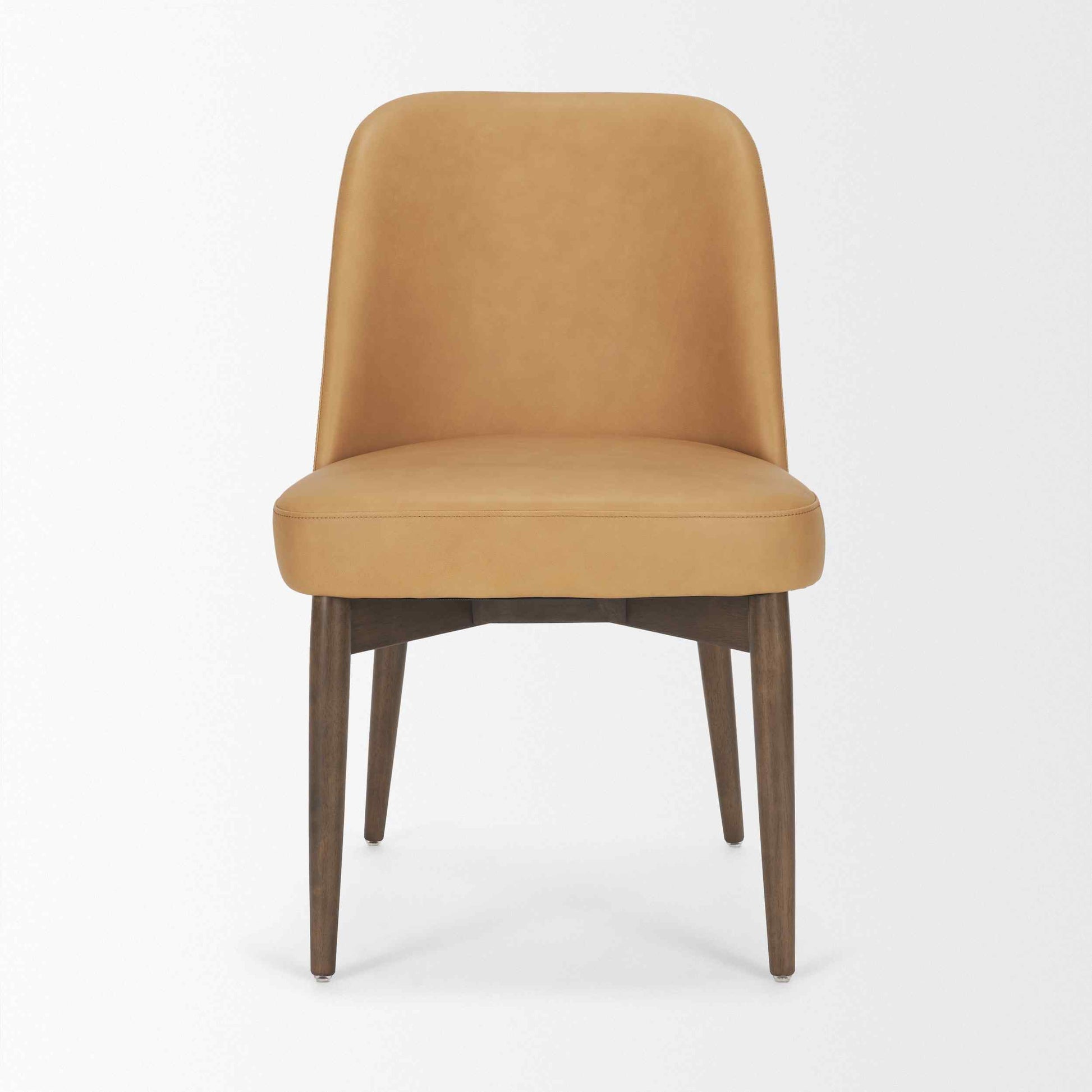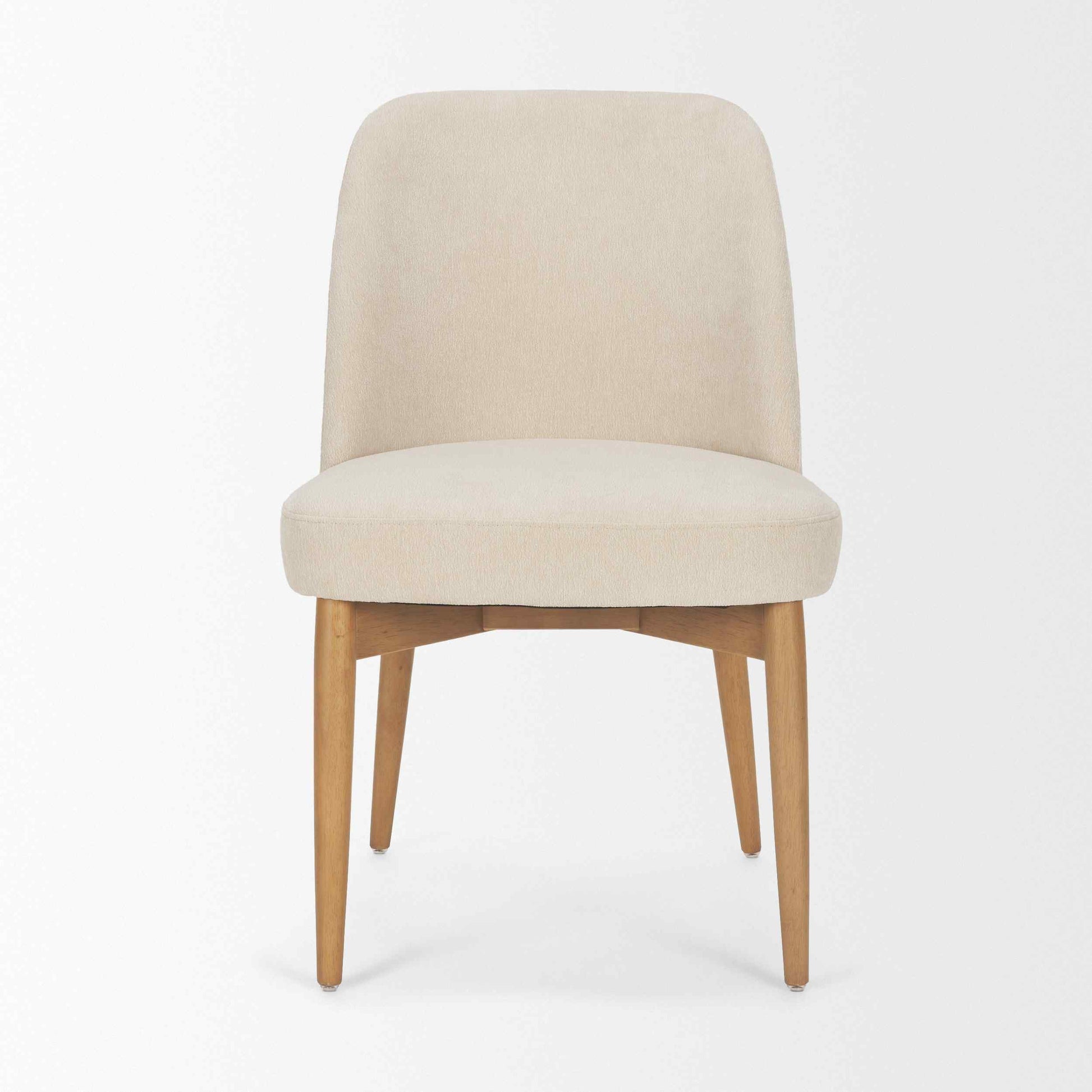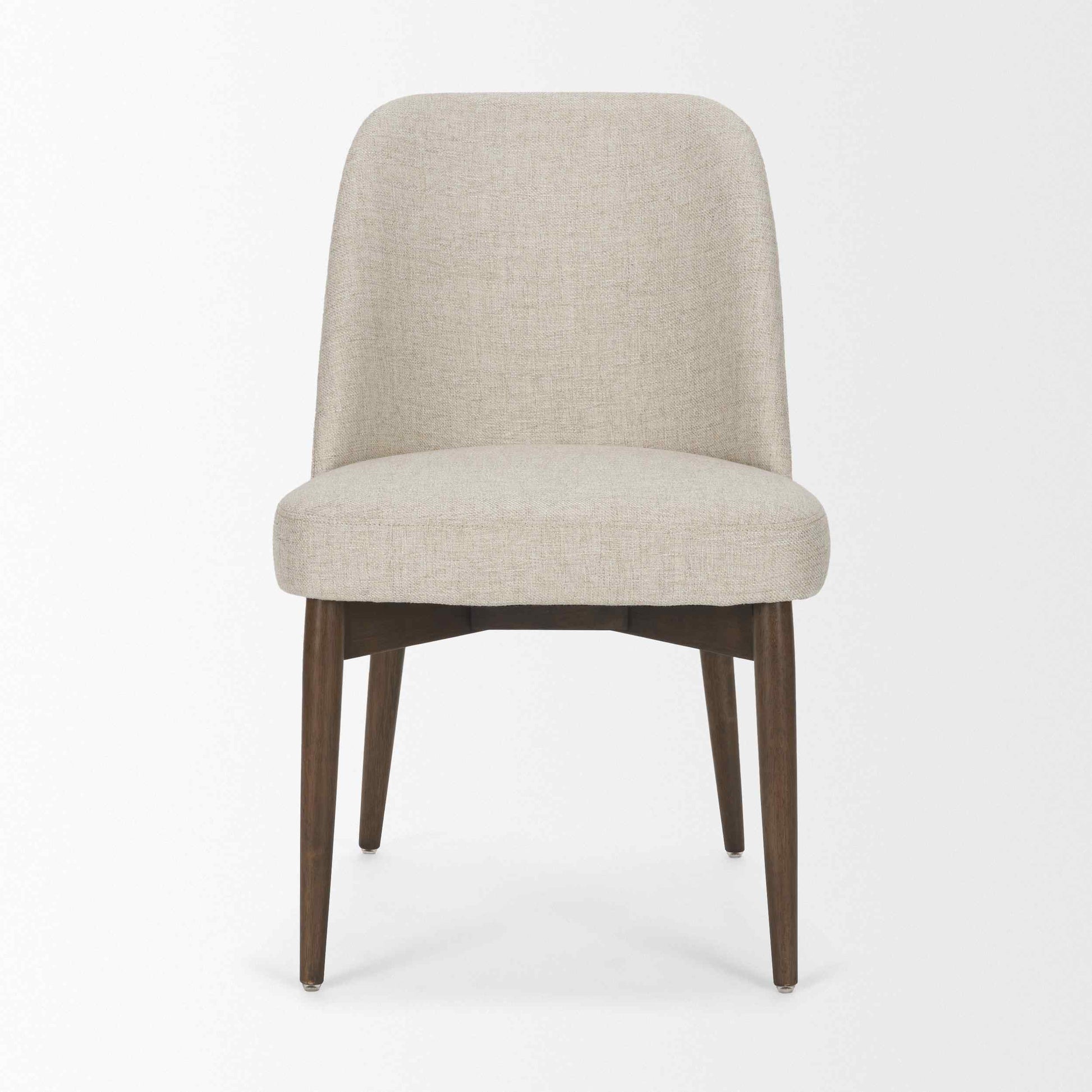 The Abbie Curved Back Oatmeal Fabric and Leather Armless Dining Chair is crafted from kiln-dried solid rubberwood, ensuring strength and stability. Its cream-beige linen-blend and leather upholstery gives it a soft touch, complementing the arched wingback silhouette. The angled back legs add a touch of architectural flair, making it a stylish addition to any dining space. This chair is designed for comfort and elegance, fitting perfectly under tables to save space without sacrificing style. With no assembly required, it’s ready to enhance your dining area right out of the box. Enjoy a blend of modern style and timeless grace with this adaptable piece.