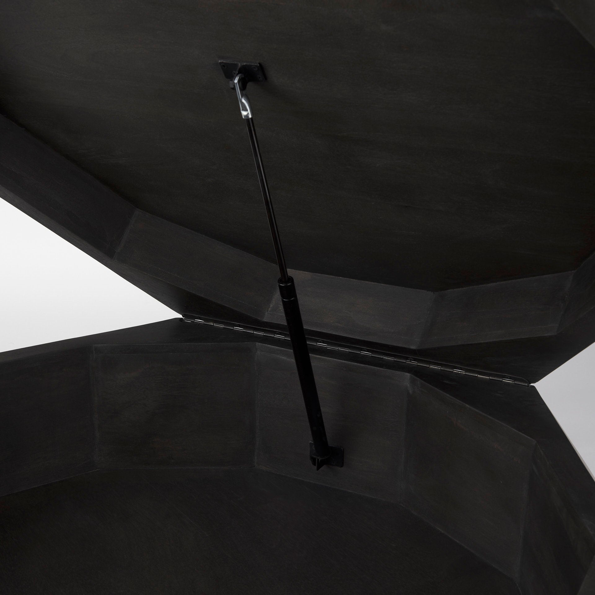 - It has a hydraulic top that lifts open to a spacious storage compartment below - perfect for keeping spaces organized and tidy!