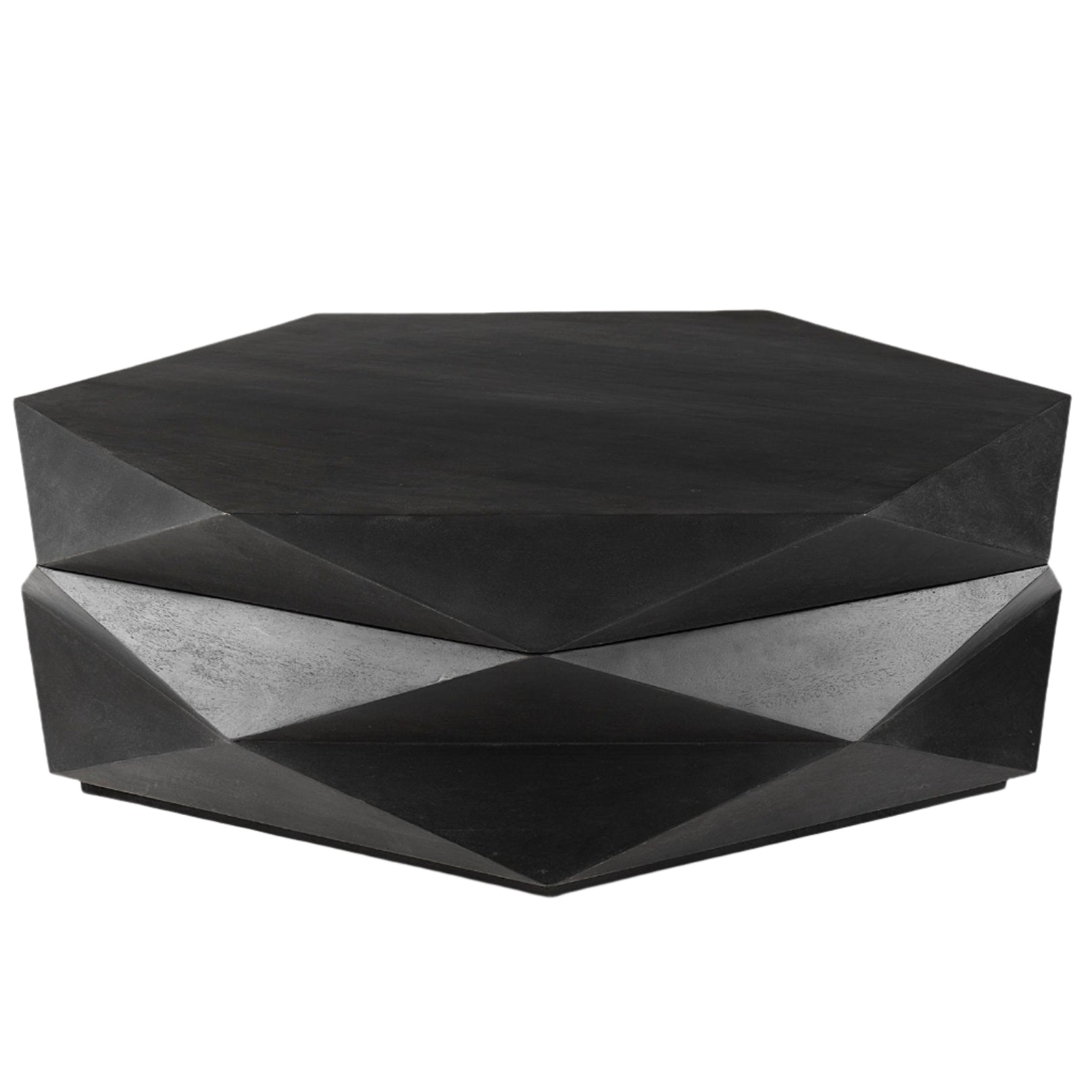 - This coffee table, made entirely from solid Mango wood, features striking geometric facets that give it a sense of movement and depth.
