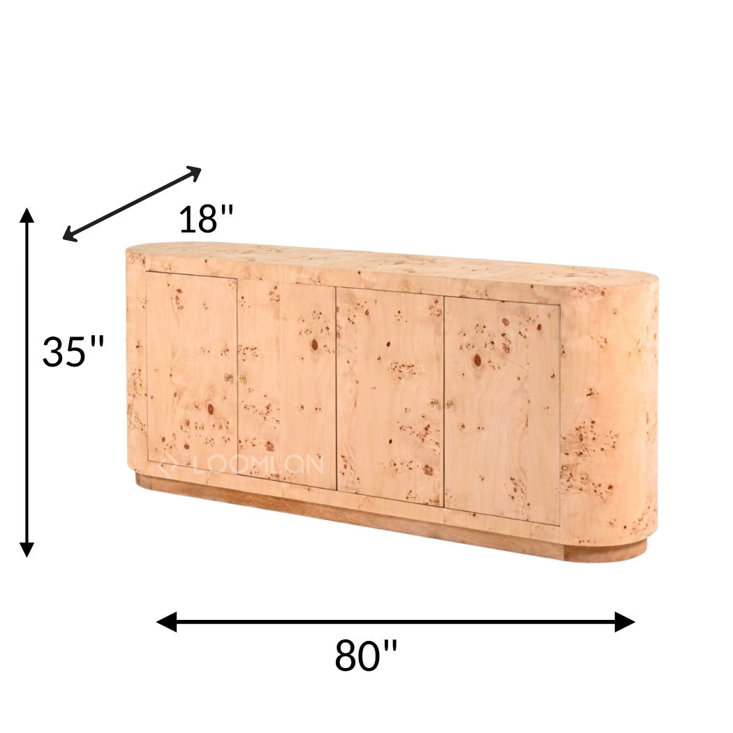 Avandrae 4 Door Burl Wood Sideboard Features: