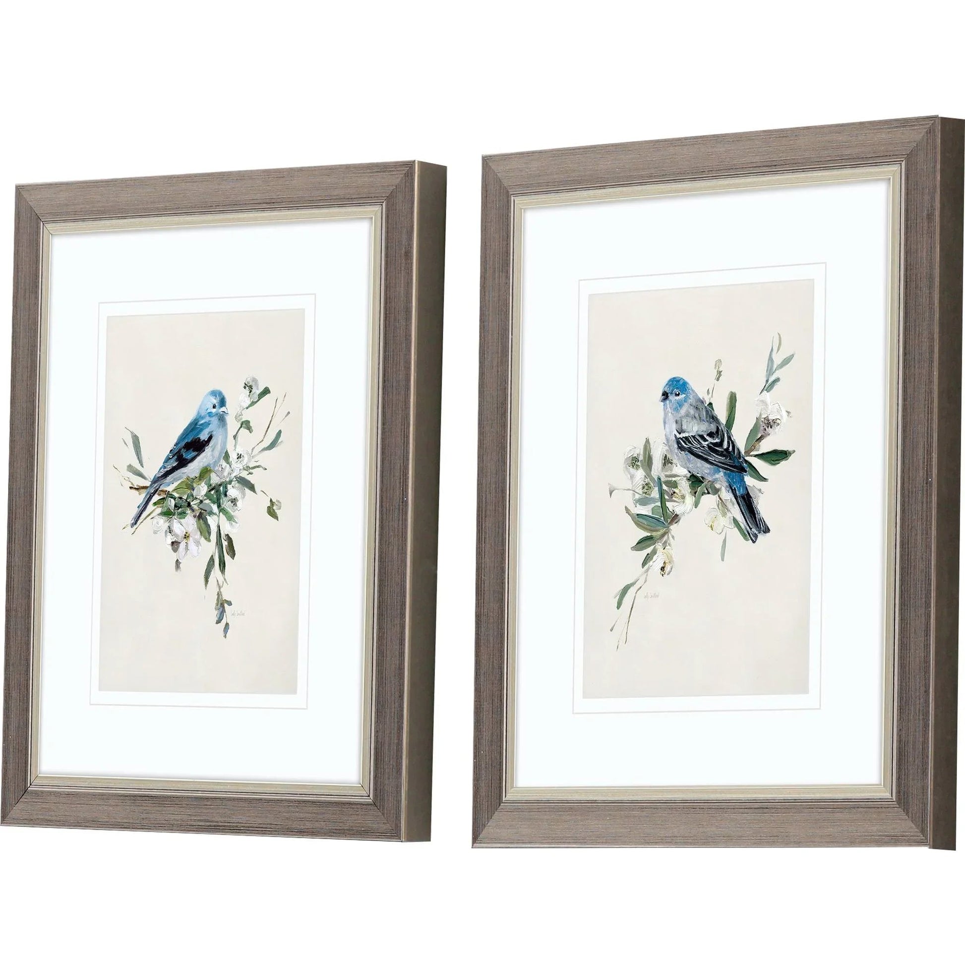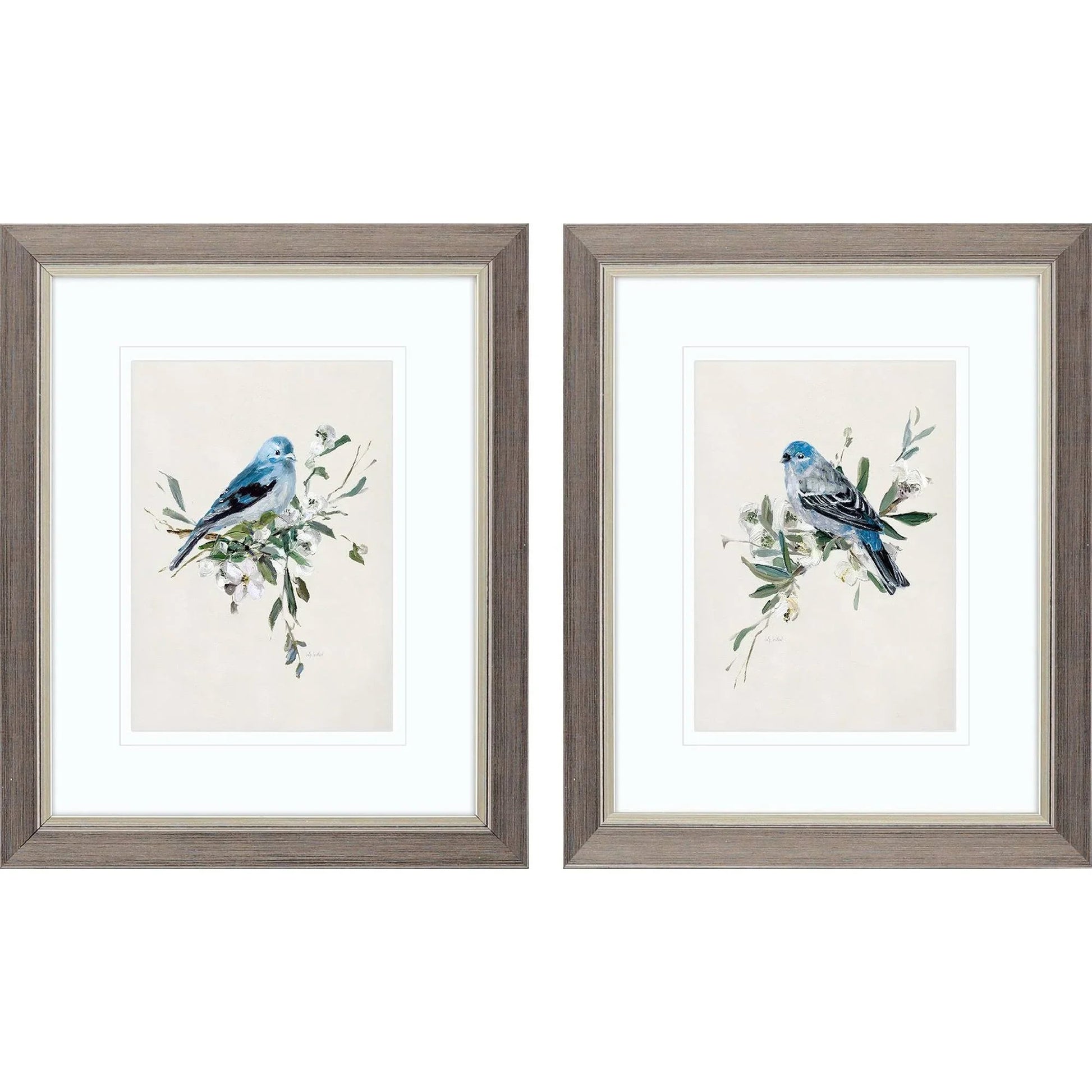Bring a touch of nature's charm into your home with this delightful set of Framed Wall Art featuring the 'Bluebird Happy S/2'. Perfect for those who appreciate traditional styles, these art pieces capture the beauty of bluebirds perched on branches with a soft beige background. The elegant design is accentuated with green and gray botanical accents, creating a soothing and inviting atmosphere in any room.