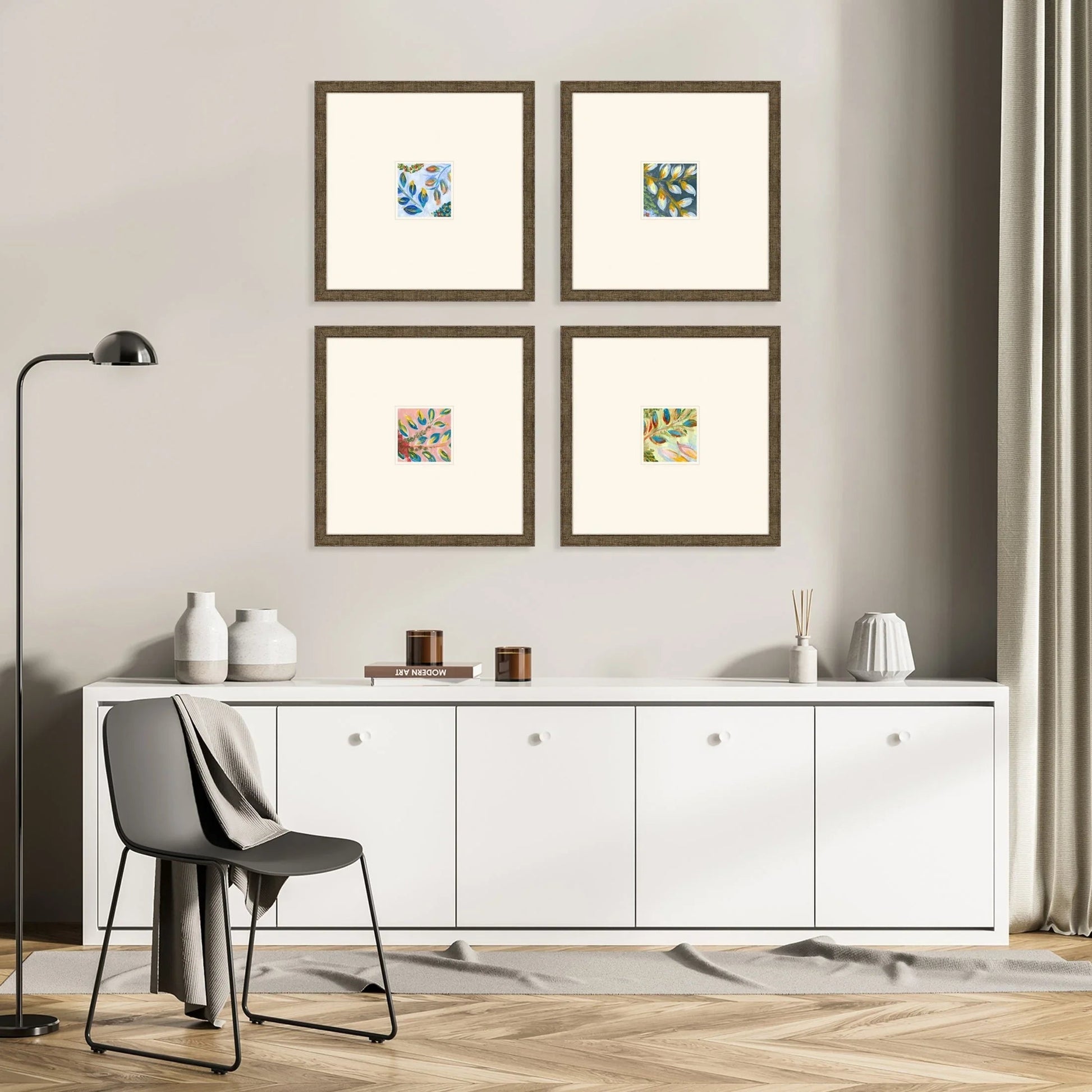 Crafted with care, the Botanica S/4 series features high-quality materials such as paper, cardboard, extruded poly, and glass. The giclee printing technique used in these pieces provides a level of detail and color that is both vibrant and long-lasting. The glass front offers a clear view while protecting the artwork from dust and damage. This set is perfect for those who appreciate art that combines vibrant colors with a touch of elegance.