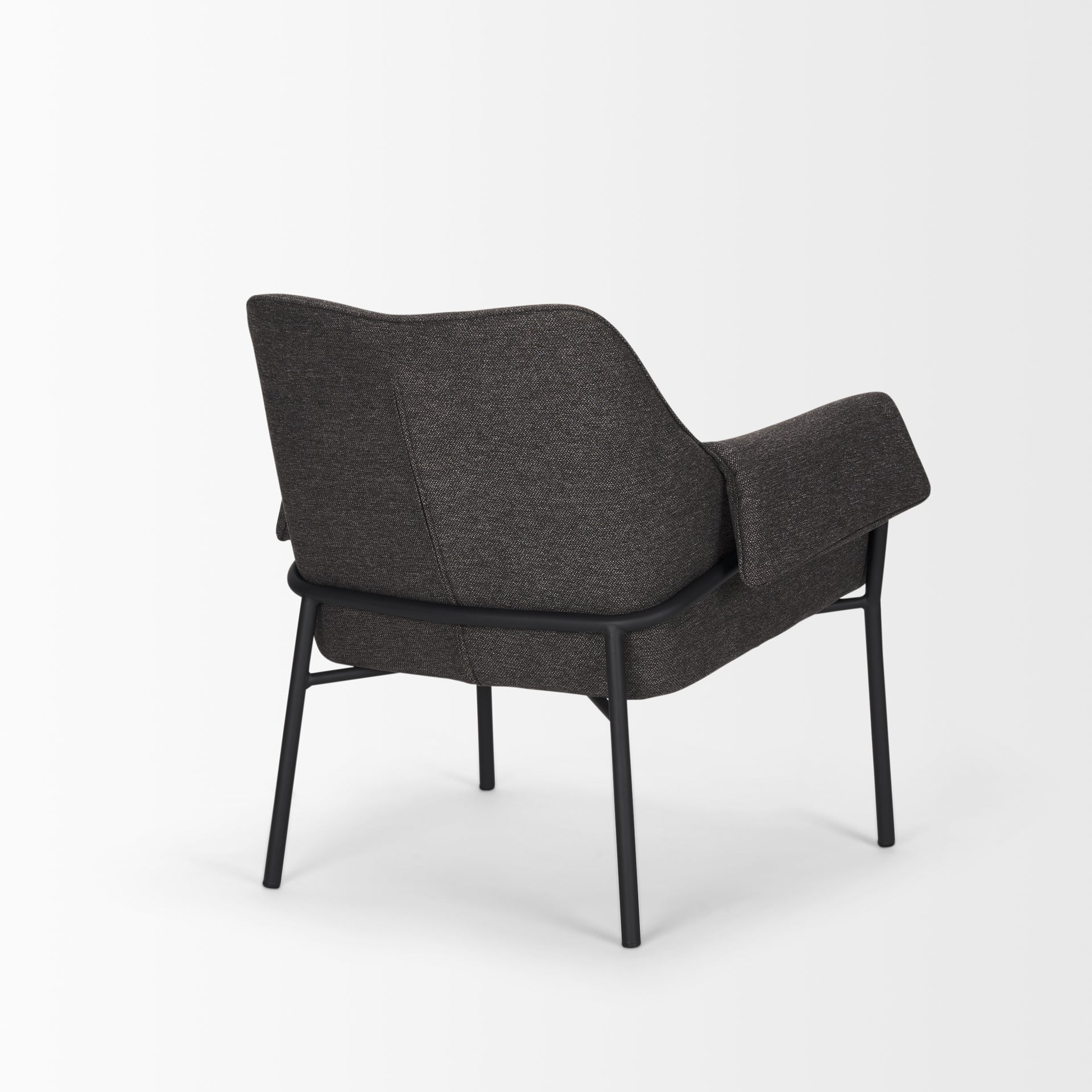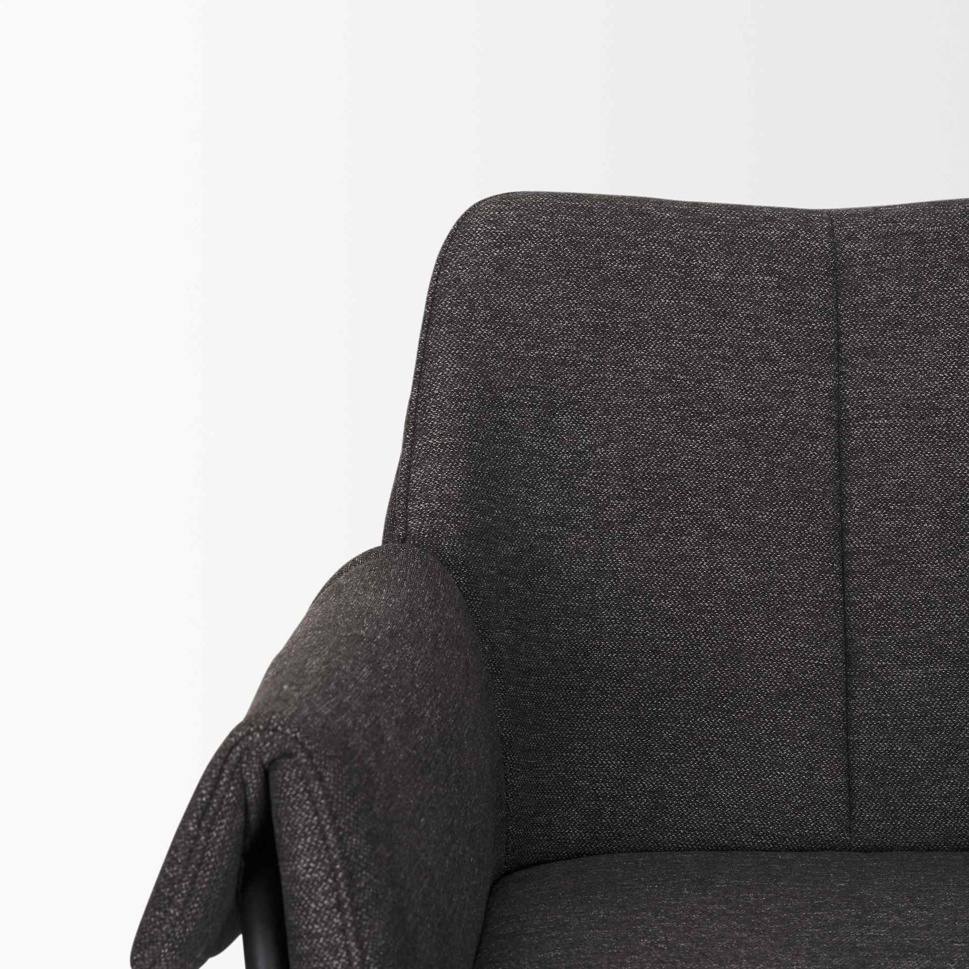 - The padded armrests roll over the matte black metal frame, providing a relaxed, casual aesthetic while also adding comfort.