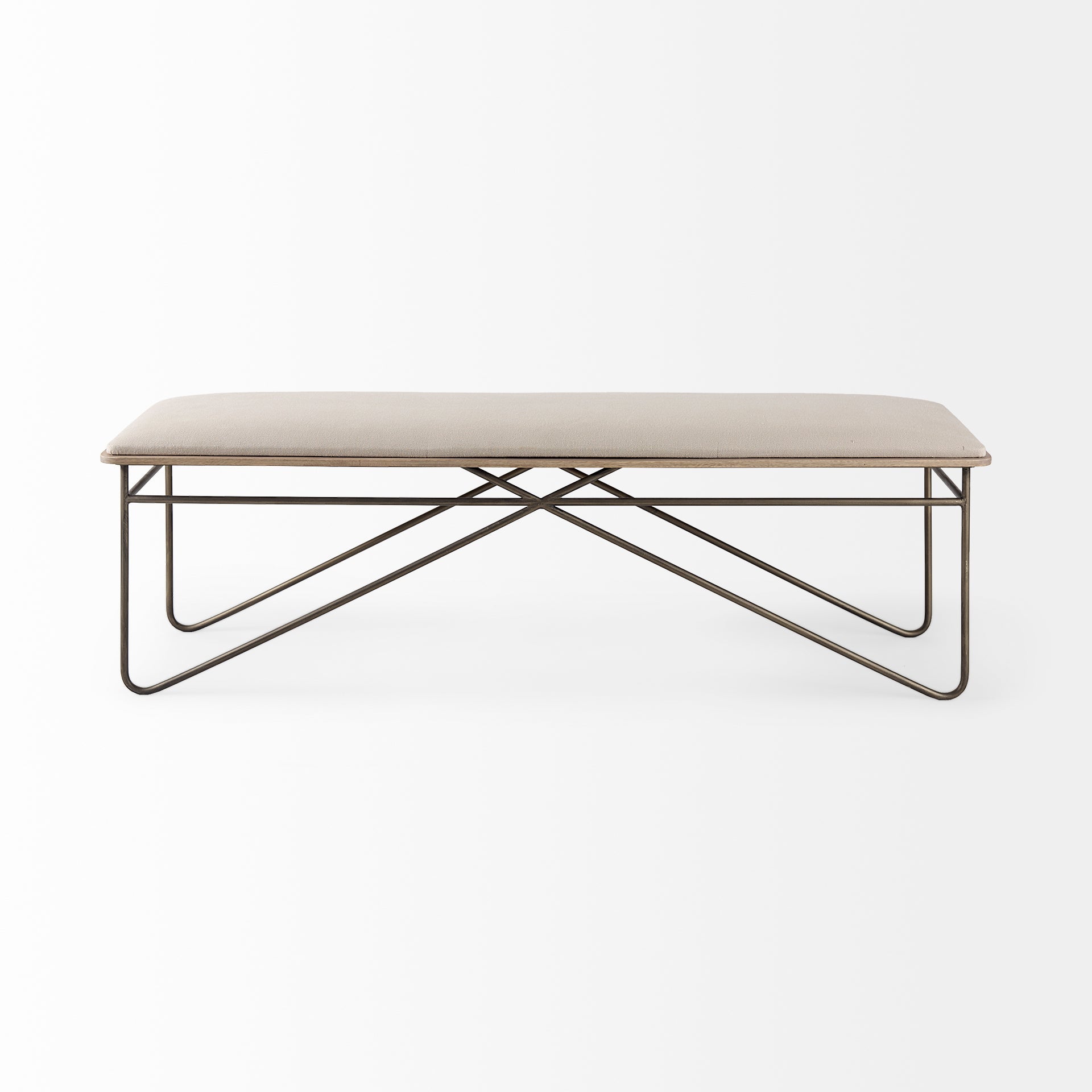 Camille Cream Fabric Bedroom Bench Elegant Metal Design Features: