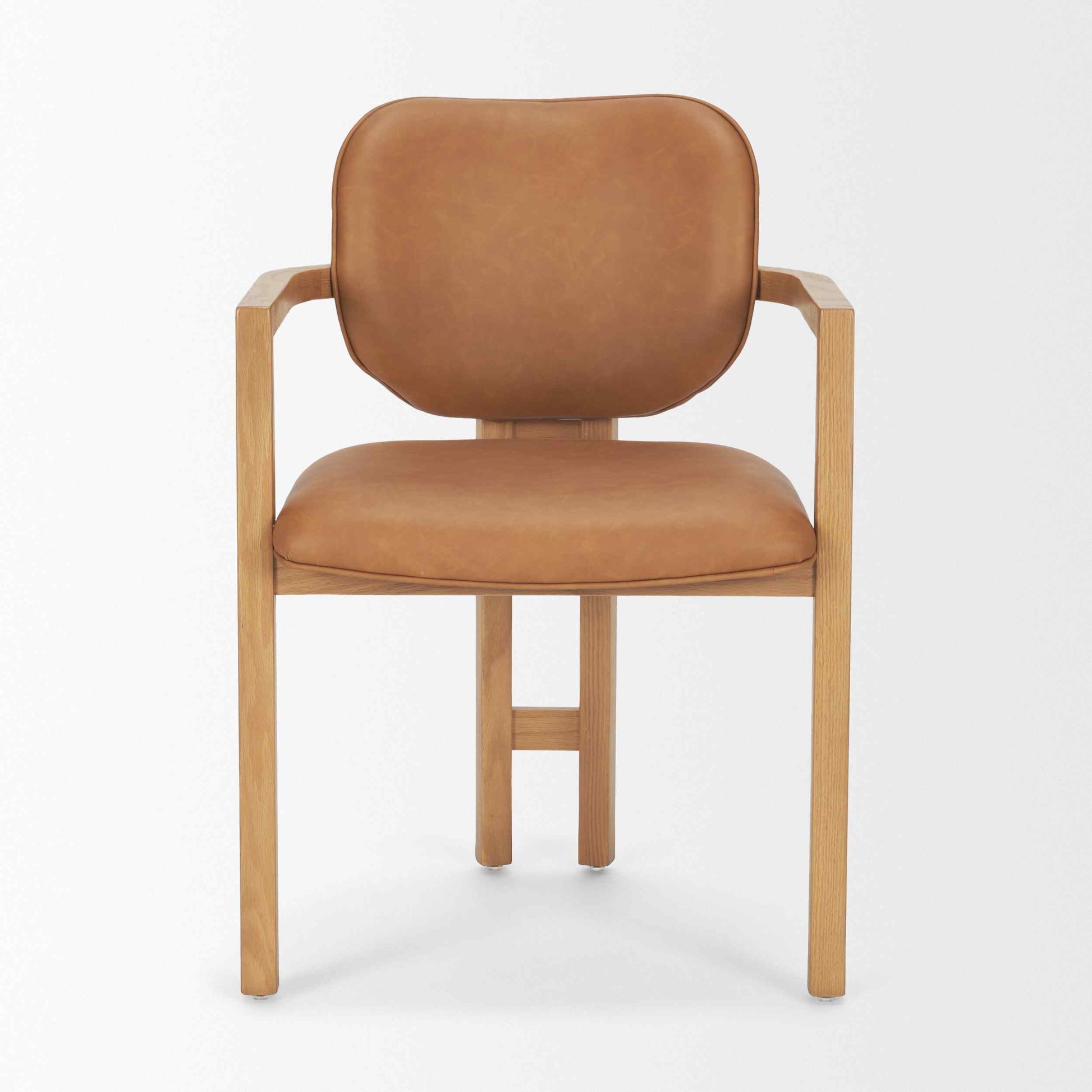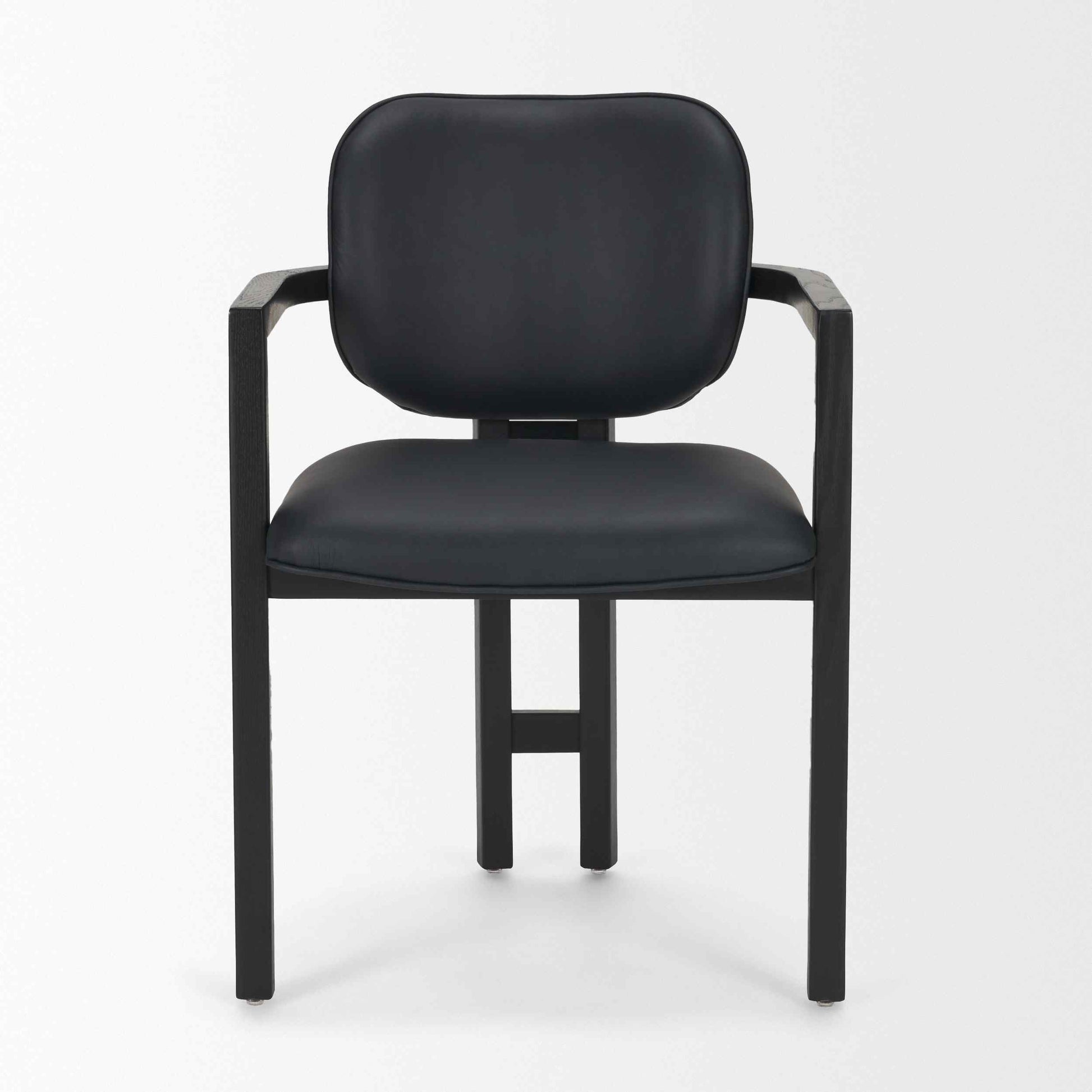 The Carlisle Armchair creates a strong design statement with its sculptural look and bold presence. Wrapped in full-grain leather and chenille, it offers a curved back, angular arms, and a unique double-beam frame. The solid tripod-style base, crafted from kiln-dried wood, adds strength and stability, giving the chair its architectural charm. This chair is perfect for those who want to add a touch of sophistication to their dining room. The rich leather and durable wood ensure it will last for years. With no assembly needed, it’s ready to enhance your space straight out of the box.