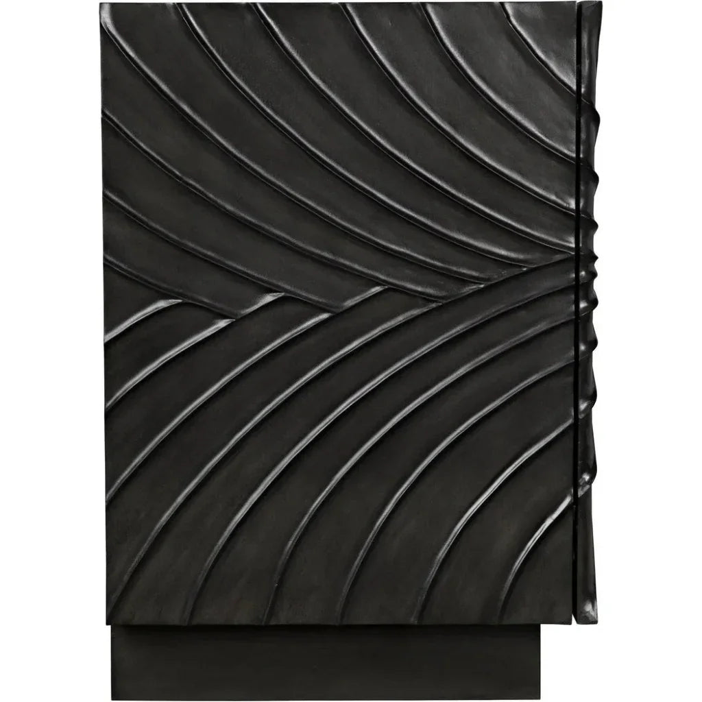 - Four hand-carved touch-open cupboard doors with generous interior storage