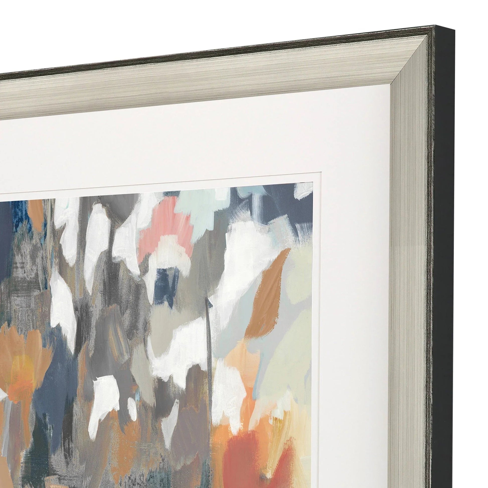 Bring a burst of color into any room with this stunning Corner Flower Stand I and II. This artwork showcases a vibrant display of blossoms, beautifully captured in an abstract floral painting. The composition features a harmonious blend of blue, beige, white, red, and gray, all coming together in textured brushstrokes that add depth and interest. The artwork is double-matted in white, enhancing its visual appeal and drawing the eye inward to the colorful display. Perfect for any home or office, this piece complements a range of decor styles.