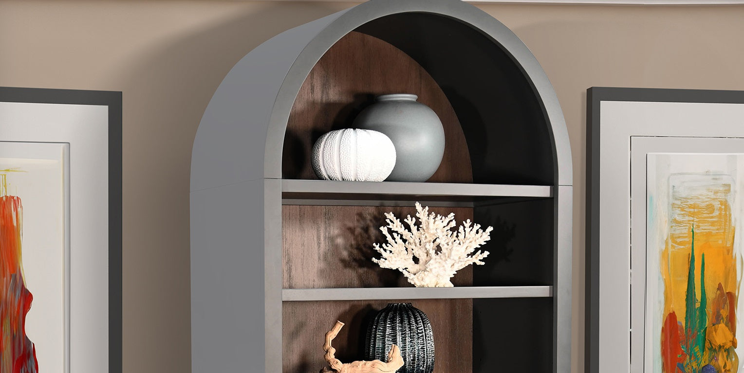 Crescent Hill Arched Display Cabinet With Elegant Wood Doors Features: