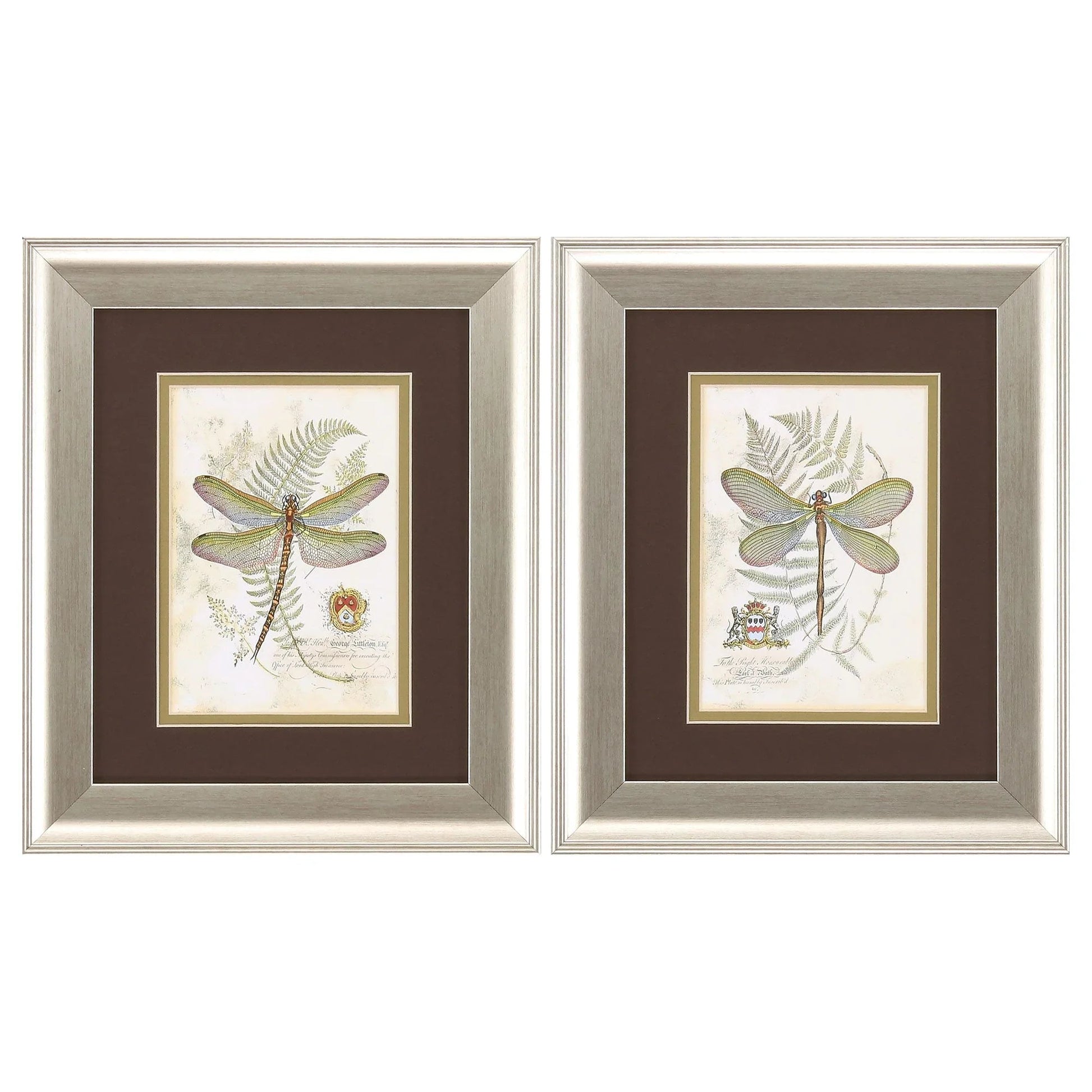 Dragonfly S/2 Framed Wall Art Prints With Glass Front Features: