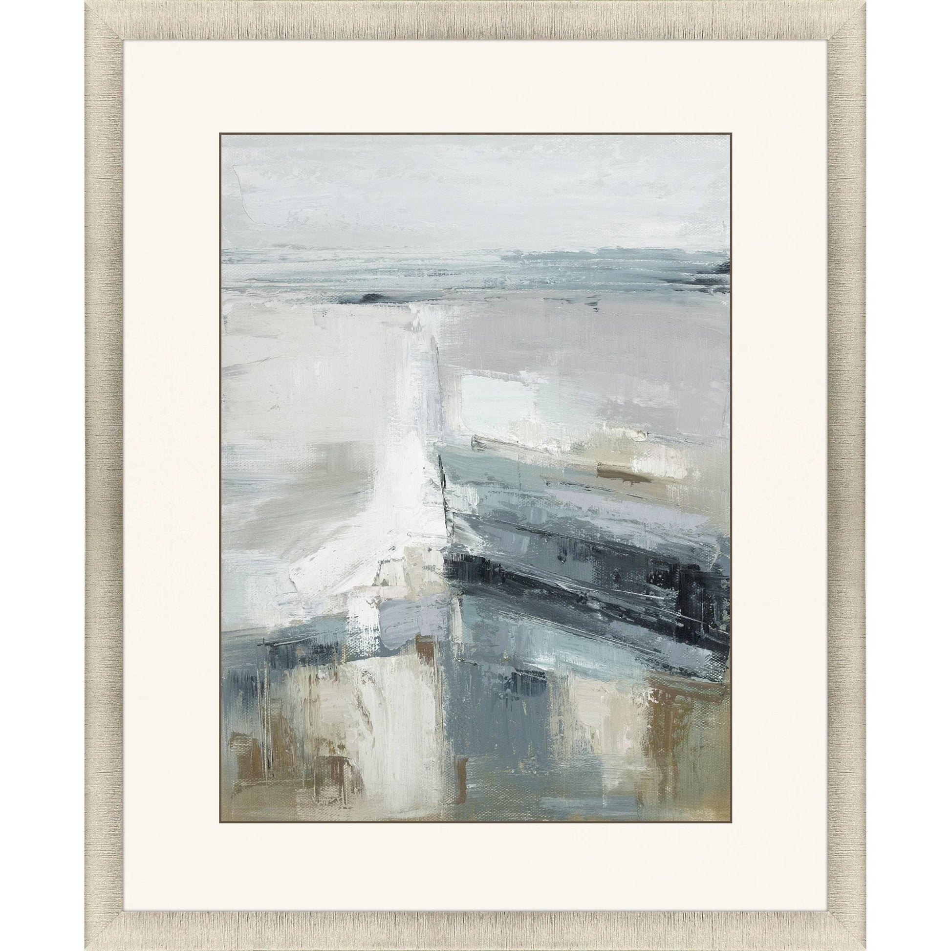 This piece of art brings the soothing allure of the sea into any space. Featuring a blend of blue and white hues, it creates a calming atmosphere with its abstract design. The artwork is elegantly matted in white, enhancing the vividness of the colors and adding depth to the visual experience. Encased in a champagne gold block contemporary frame, the piece exudes a subtle sophistication that complements its modern style.