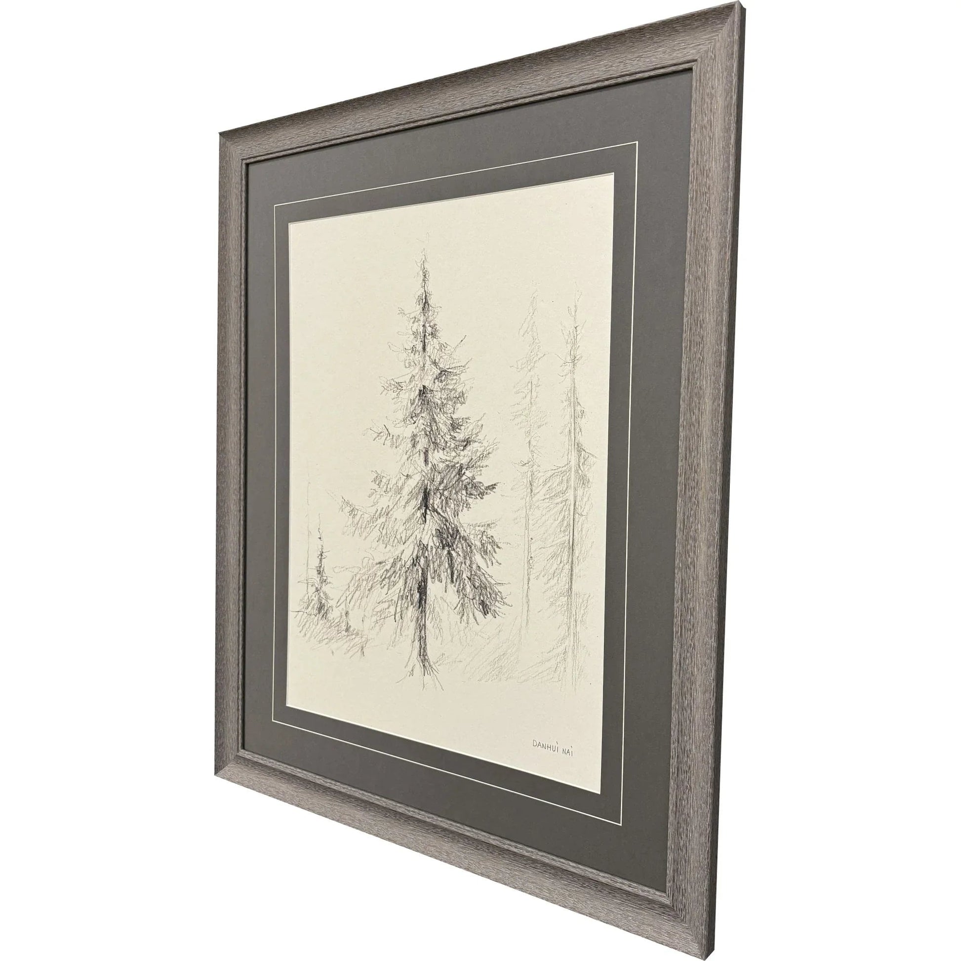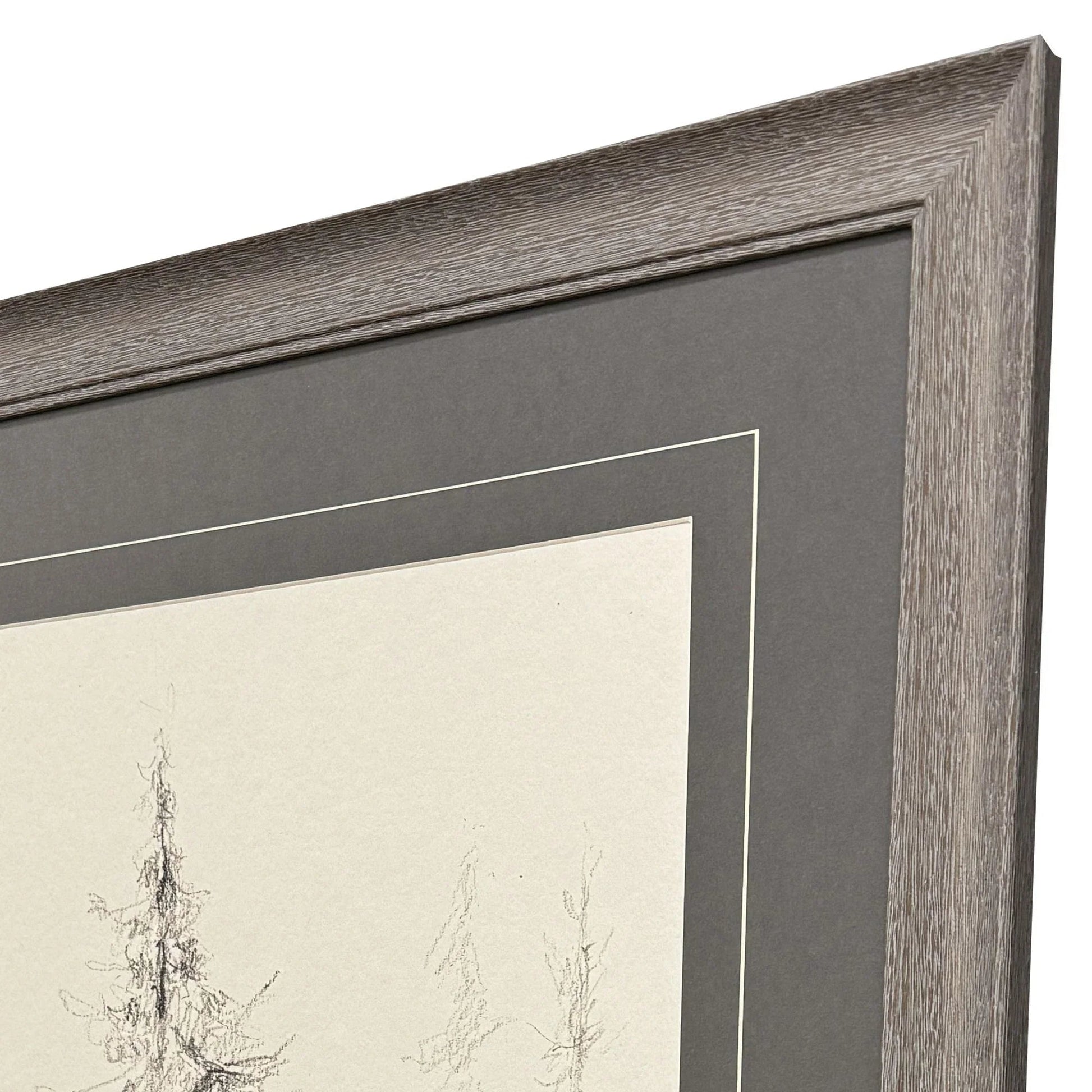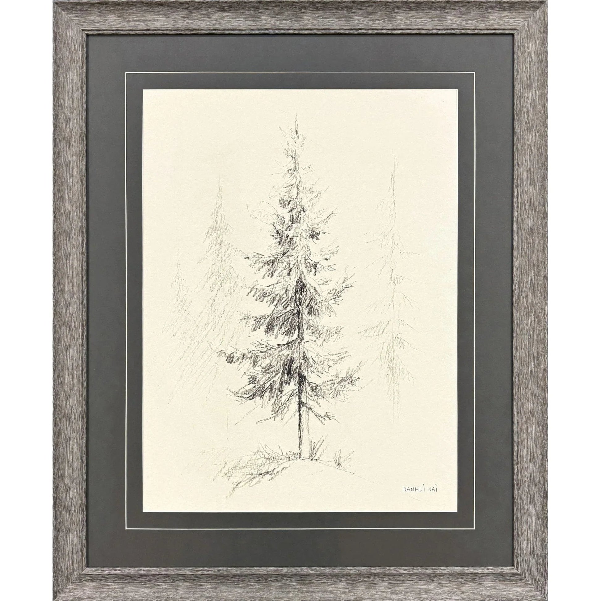Bring the tranquility of nature into your home with this exquisite Framed Wall Art piece. The Elegant Pine I and II captures the simplicity of a pine tree sketch, rendered in soft, muted tones. Its natural beauty is enhanced by a black mat that adds depth and contrast to the image. The rustic wood-grain finish of the frame echoes the organic theme, providing a classic touch that complements any casual decor style. Measuring with generous dimensions, this artwork is designed to be a stunning focal point in any room.