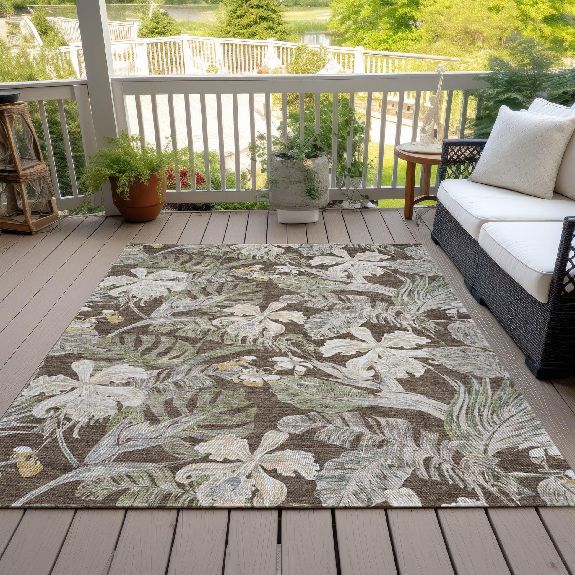 Transform your living space with a touch of nature-inspired elegance with the Faereth Brown Washable Rug. Its striking tropical leaf and palm motif brings an exotic flair, making it the perfect centerpiece for any transitional interior. This rug not only adds aesthetic charm but also offers a relaxing ambiance that complements various decor styles. The vibrant design captures the essence of tropical beauty, making it a standout addition to your home.