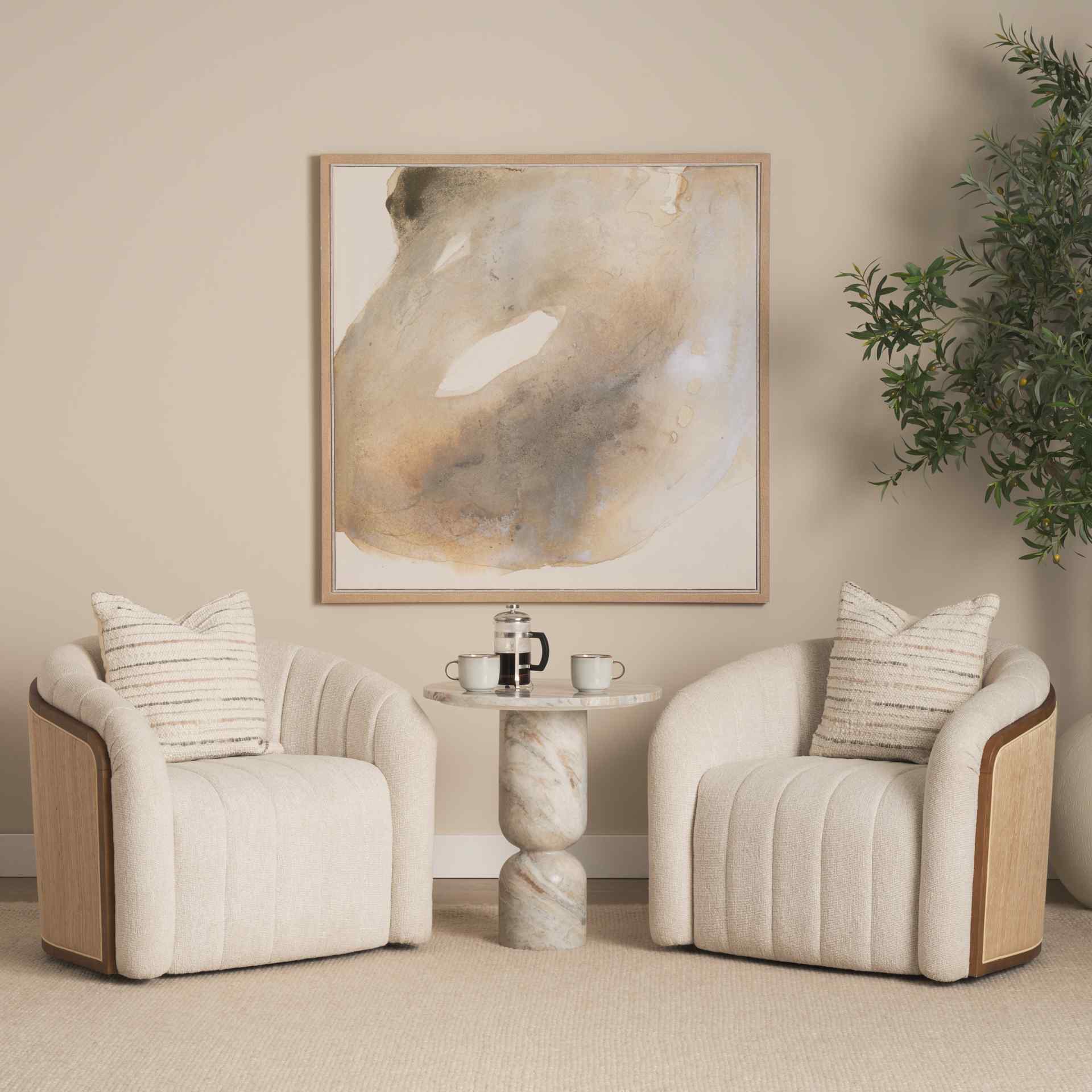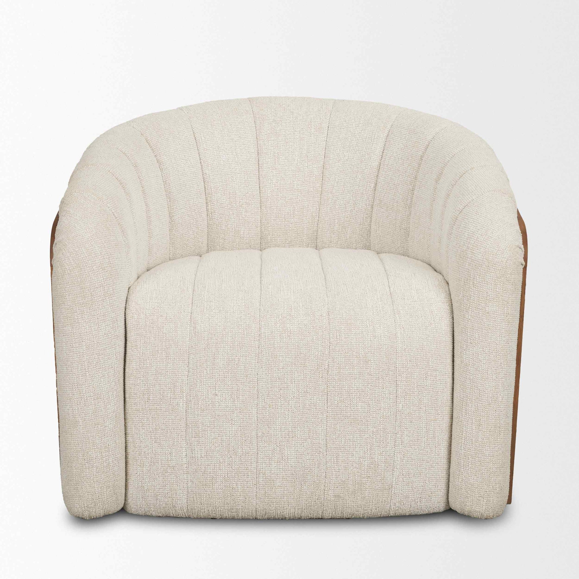 - Swivel Sophistication Meets Organic Flair: Barrel-style swivel base, sculpted volume, and seashell channel detailing offer organic texture and contemporary flair