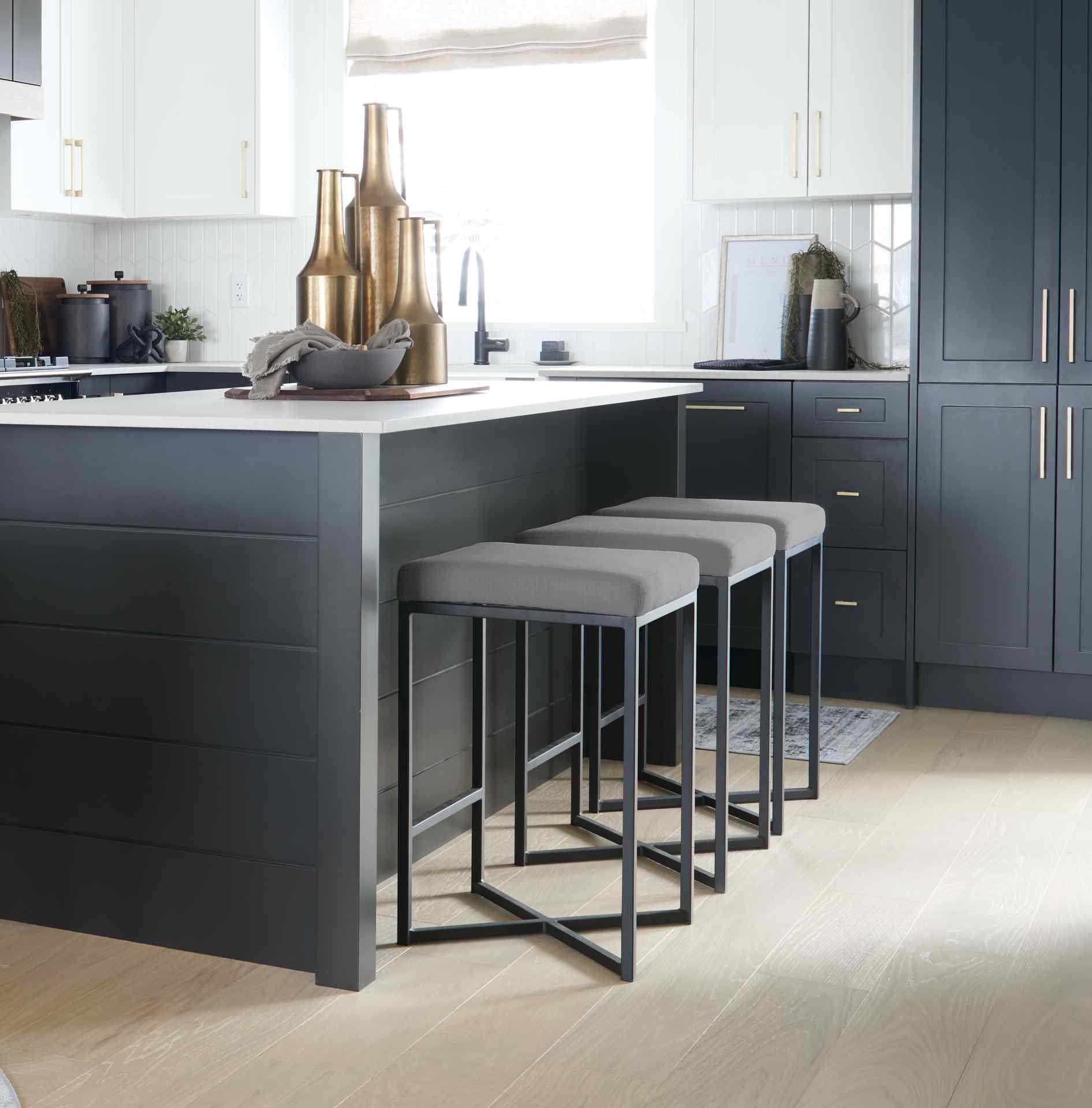 Expertly crafted for those who appreciate both style and function, this counter stool is a great addition to any modern or industrial-themed space. The gray fabric seat offers a plush and comfortable spot to sit, while the matte-black metal frame adds a touch of elegance. Designed with stability in mind, the sturdy iron base ensures durability and balance, making it a reliable choice for kitchen and bar counters alike. This stool's minimalist design allows it to blend seamlessly into various interiors, offering both visual appeal and practicality.