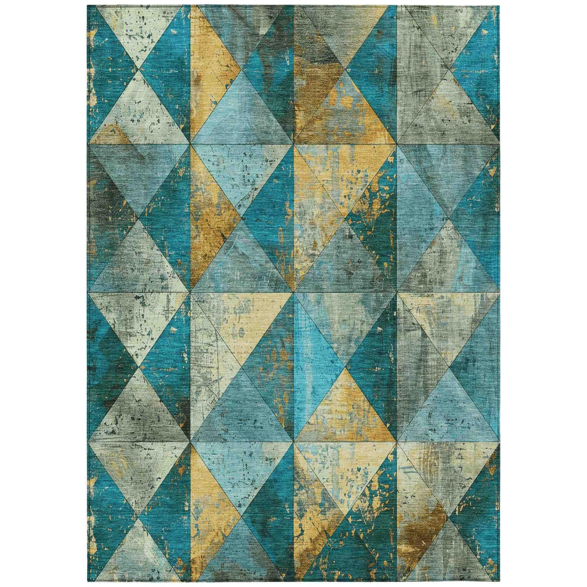 With its striking diamond lattice pattern, the Galon Teal Washable Rug adds a touch of transitional flair to any home. The bold geometric design creates a dynamic visual effect, making it an ideal choice for contemporary settings. Crafted with resilience in mind, this rug combines style with functionality, making it perfect for both indoor and outdoor use. The vibrant teal color enhances the rug's modern appeal, offering a refreshing splash of color to your space.