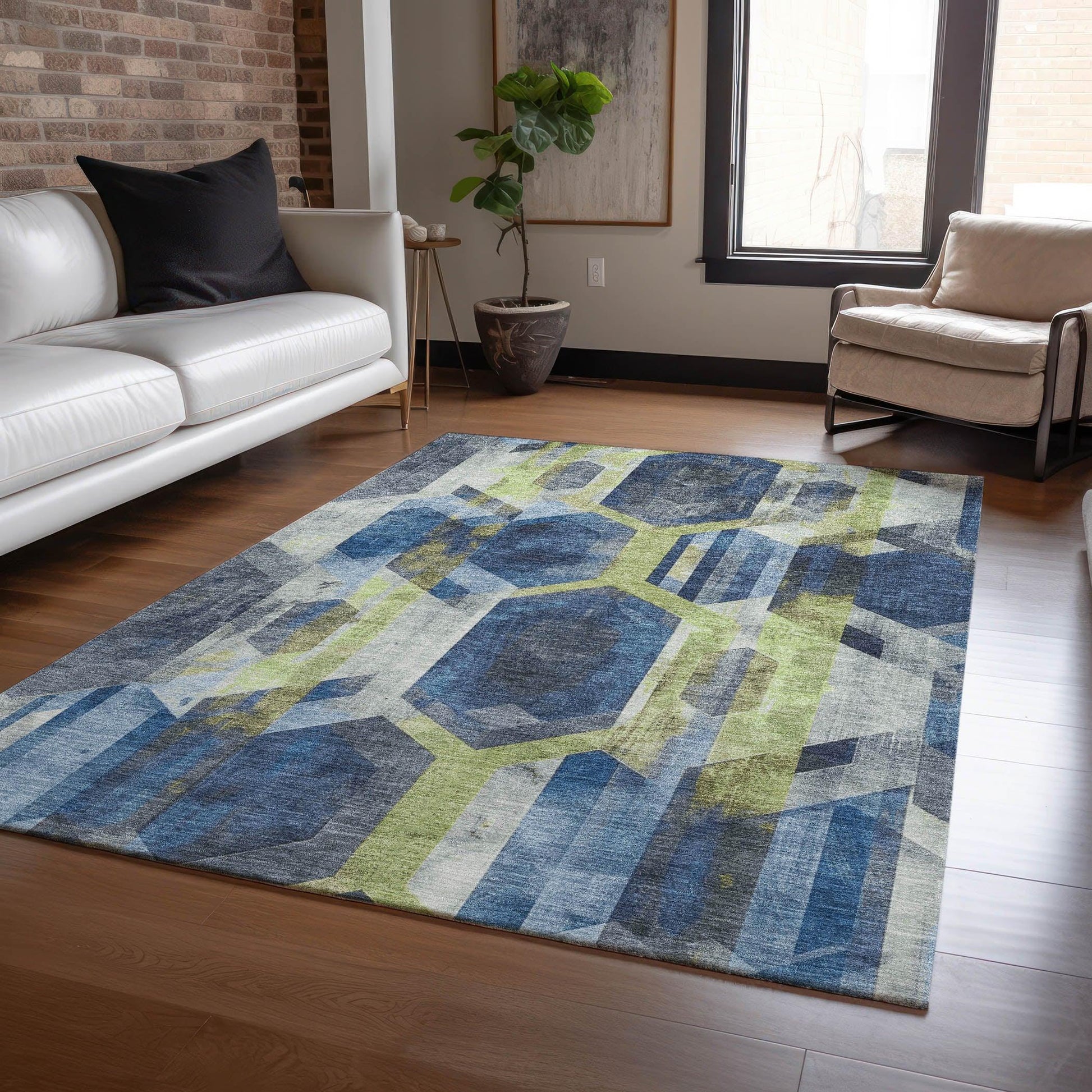 Galor Blue Washable Rug With Modern Geometric Design Features: