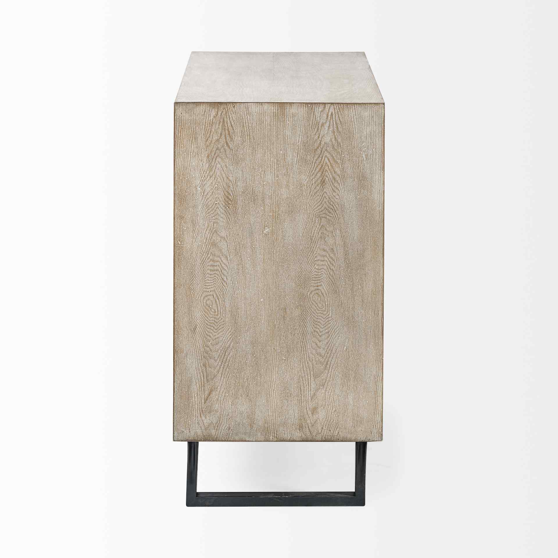 The Giselle Three Drawers Accent Cabinet is a stylish and functional addition to any room. Crafted from high-quality engineered wood and iron, this cabinet offers durability and elegance. Its dark-light brown finish is complemented by matte-black metal legs and pull-knobs, making it a versatile piece that enhances the decor of modern homes. The cabinet's sleek silhouette and clean lines are inspired by modern and elegant designs, ensuring it fits seamlessly into various interiors.