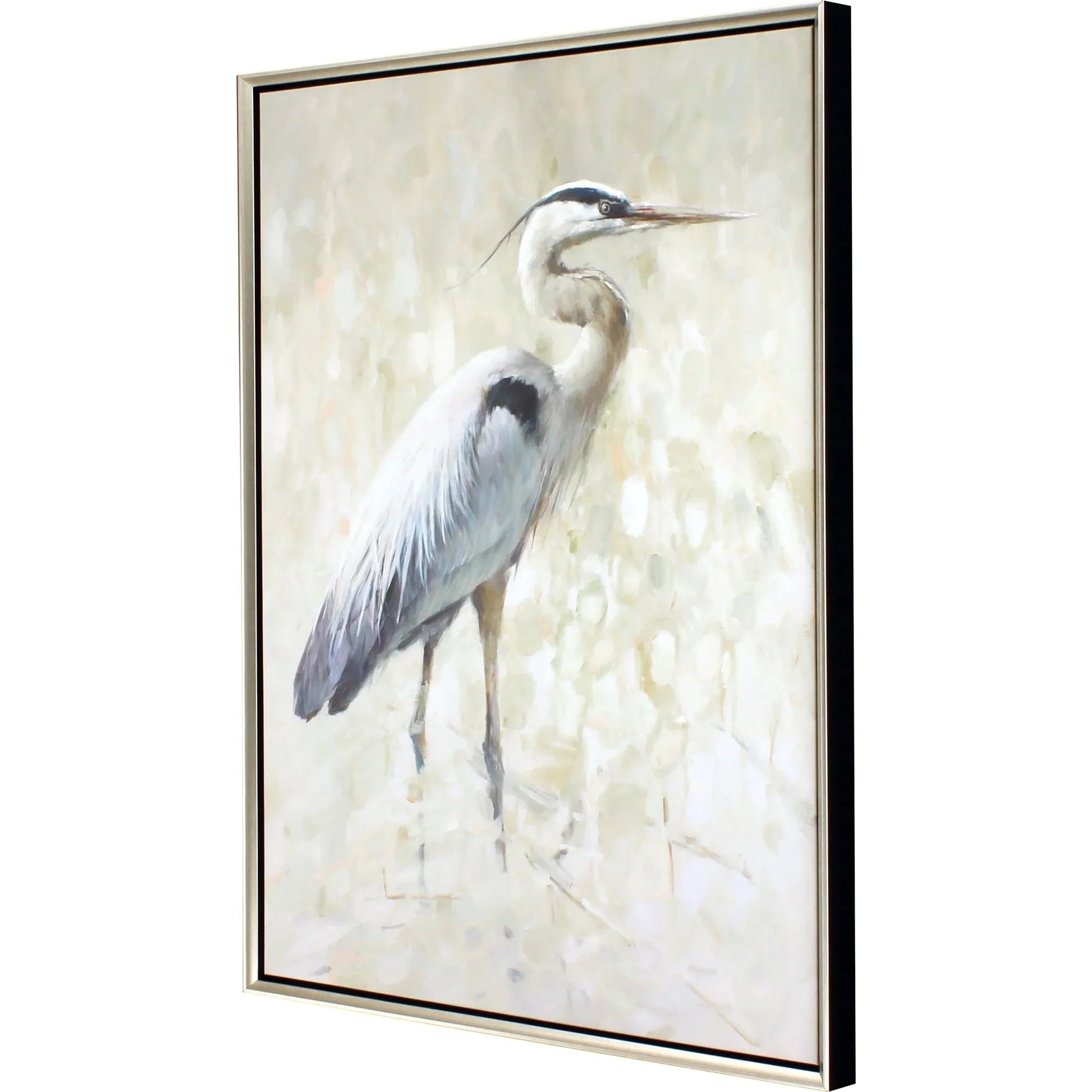 Great Blue Heron Coastal Canvas Art With Frame Features: