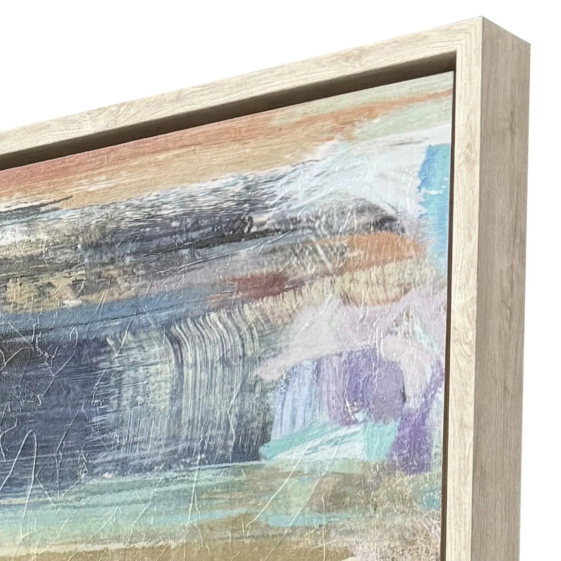 Experience the captivating allure of abstract art with the Green Mile No. 1 Framed Abstract With Gel Finish. This piece features vivid brushstrokes that blend in a mesmerizing abstract study, inviting the viewer into a world of imagination and creativity. The painting is enriched with a hand-applied gel finish, adding texture and depth that bring the artwork to life. Mounted in a whitewash floater frame, it offers a stunning presentation that is sure to become a focal point in any space.