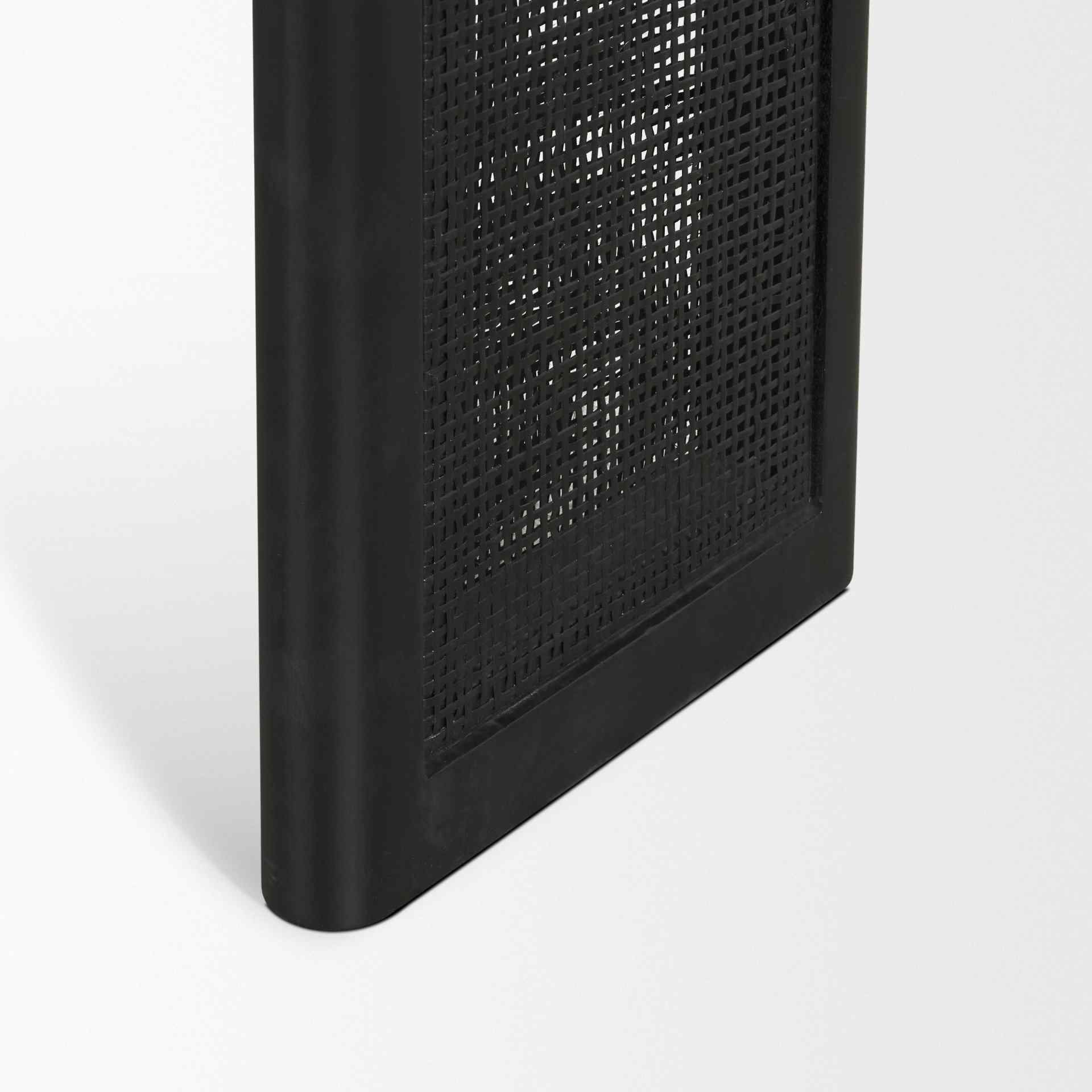 Grier 65" Black Wood Console Table With Cane Detail Features: