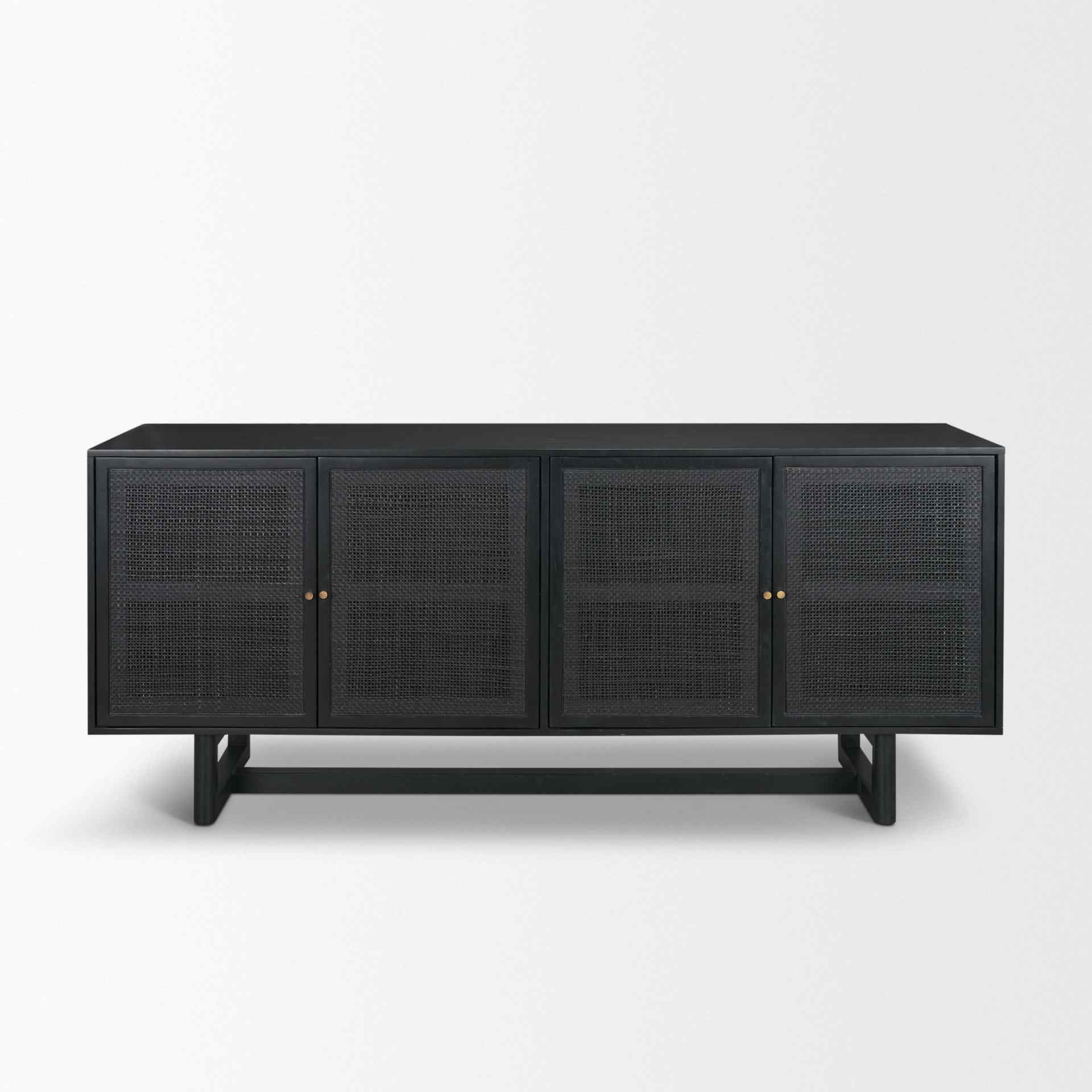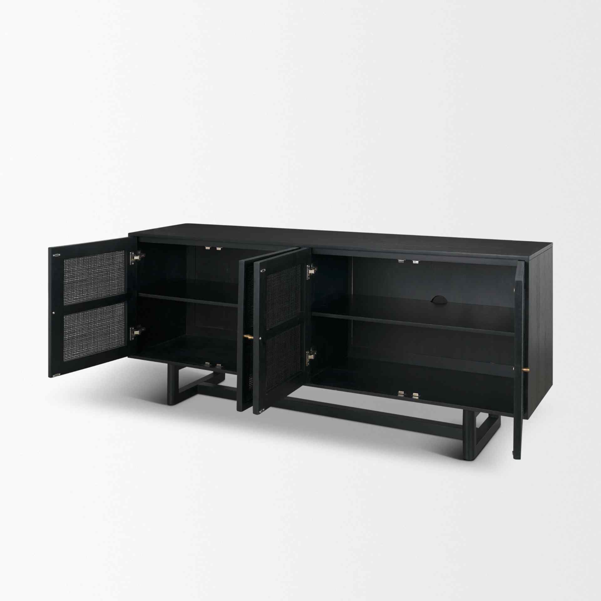 Grier 72" Black Wood Sideboard With Brass Knobs Features: