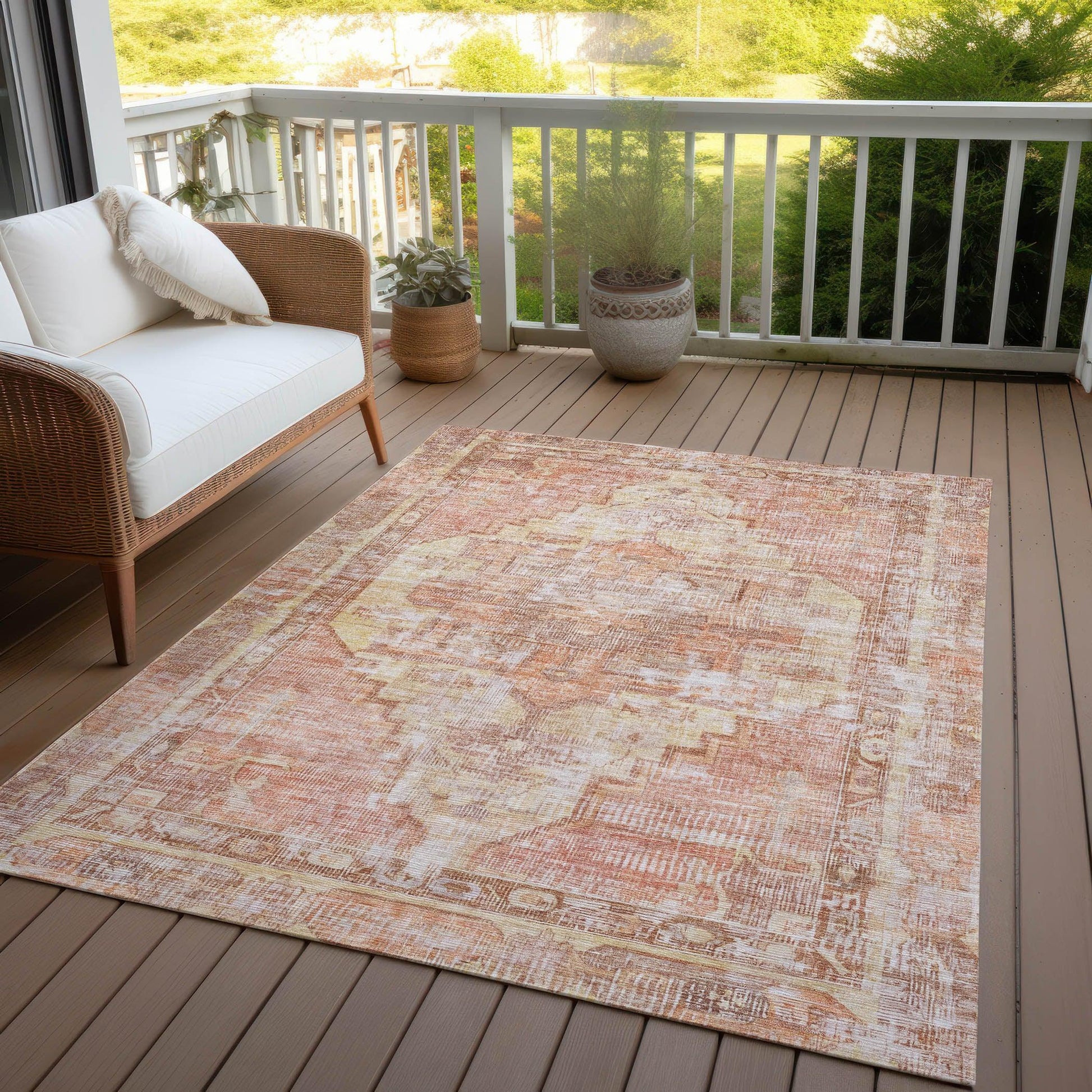 Haeleth Orange Washable Indoor-Outdoor Rug