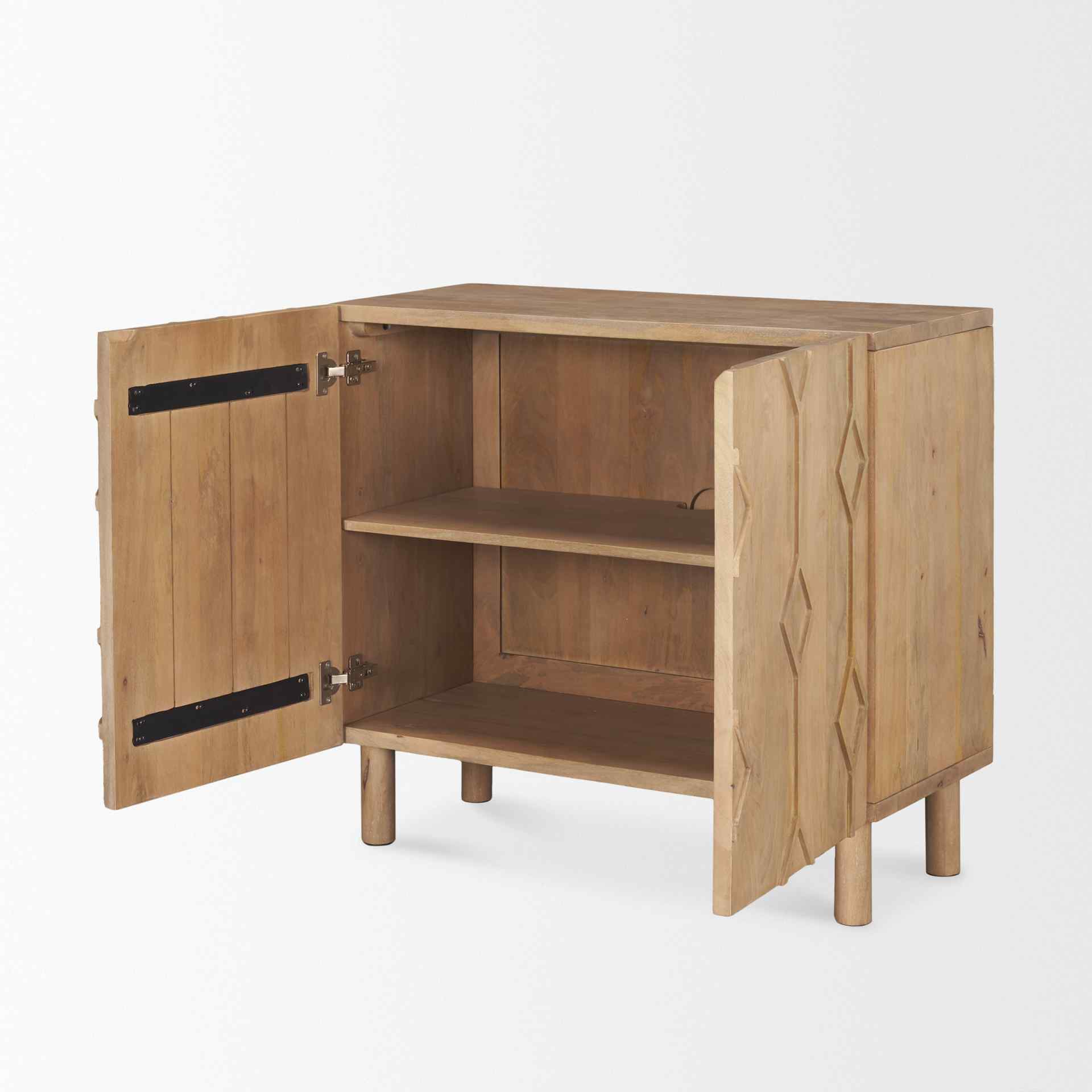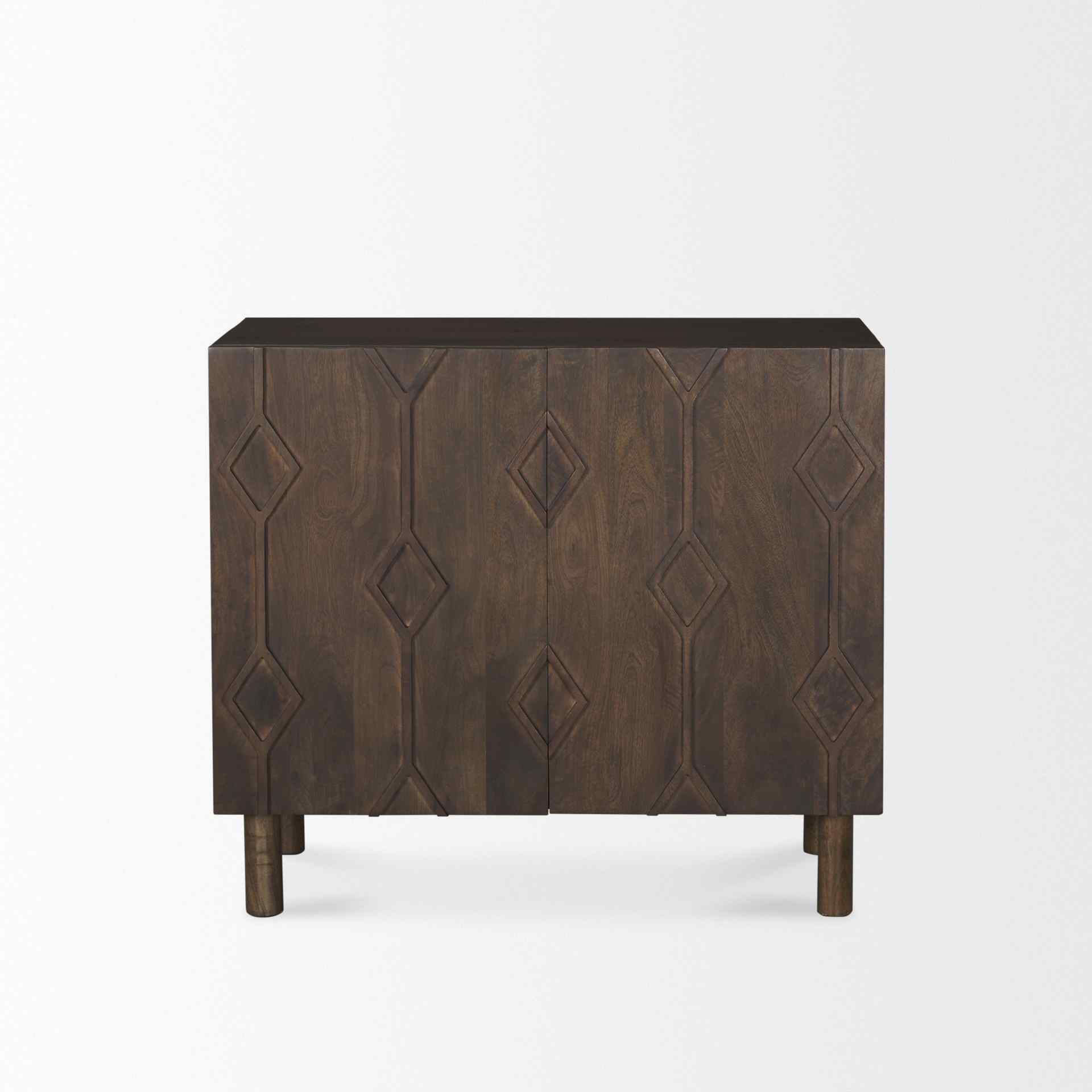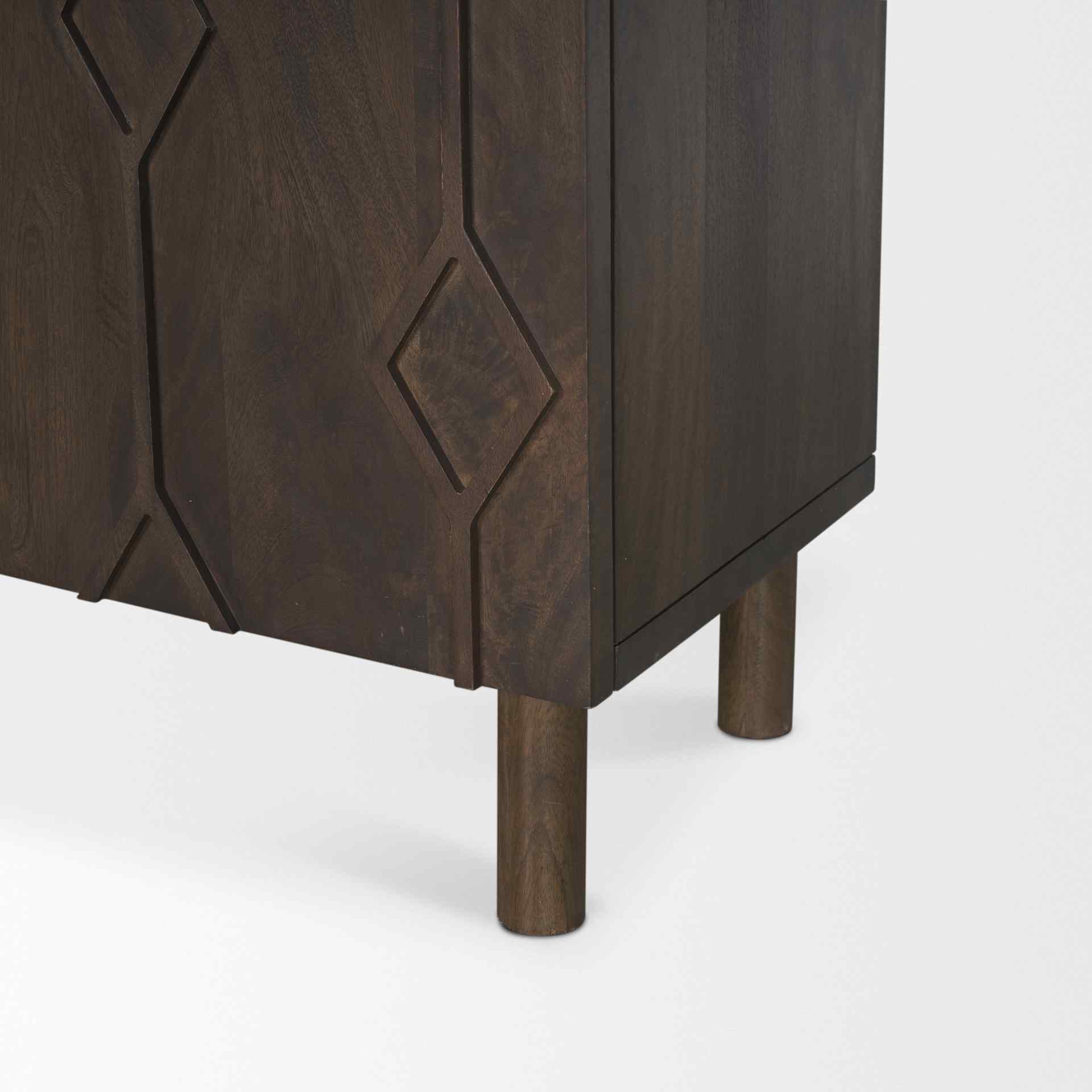 Heera Wooden Accent Cabinet With Diamond Motif Features: