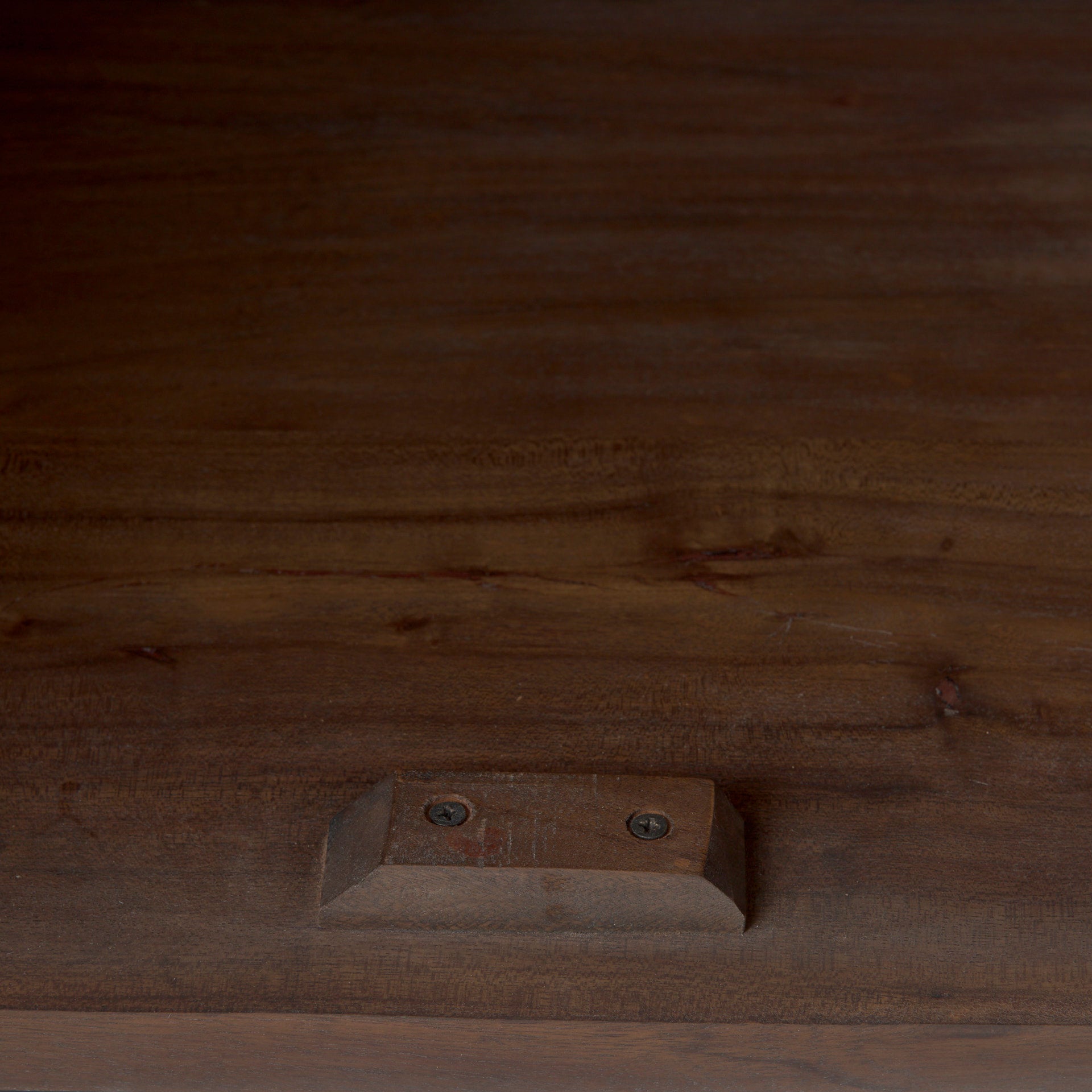 The Hemlock Wooden Brown Sideboard is a stunning addition to any home or office, designed to complement both contemporary and industrial styles. Made from solid wood, this sideboard stands out with its eye-catching, multi-hued wood grain and black resin finish. The four-door design has been skillfully crafted, using a single piece of wood to ensure a seamless and consistent look. Each door is equipped with magnetic closures, making them both functional and stylish. The rich brown color, along with the horizontal black stripe, adds a touch of elegance and sophistication to any space.