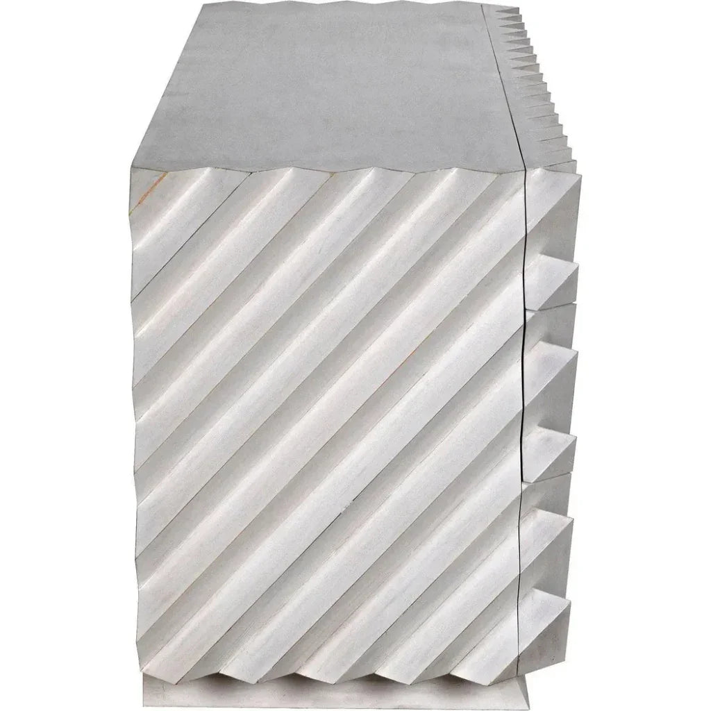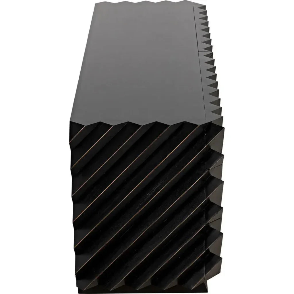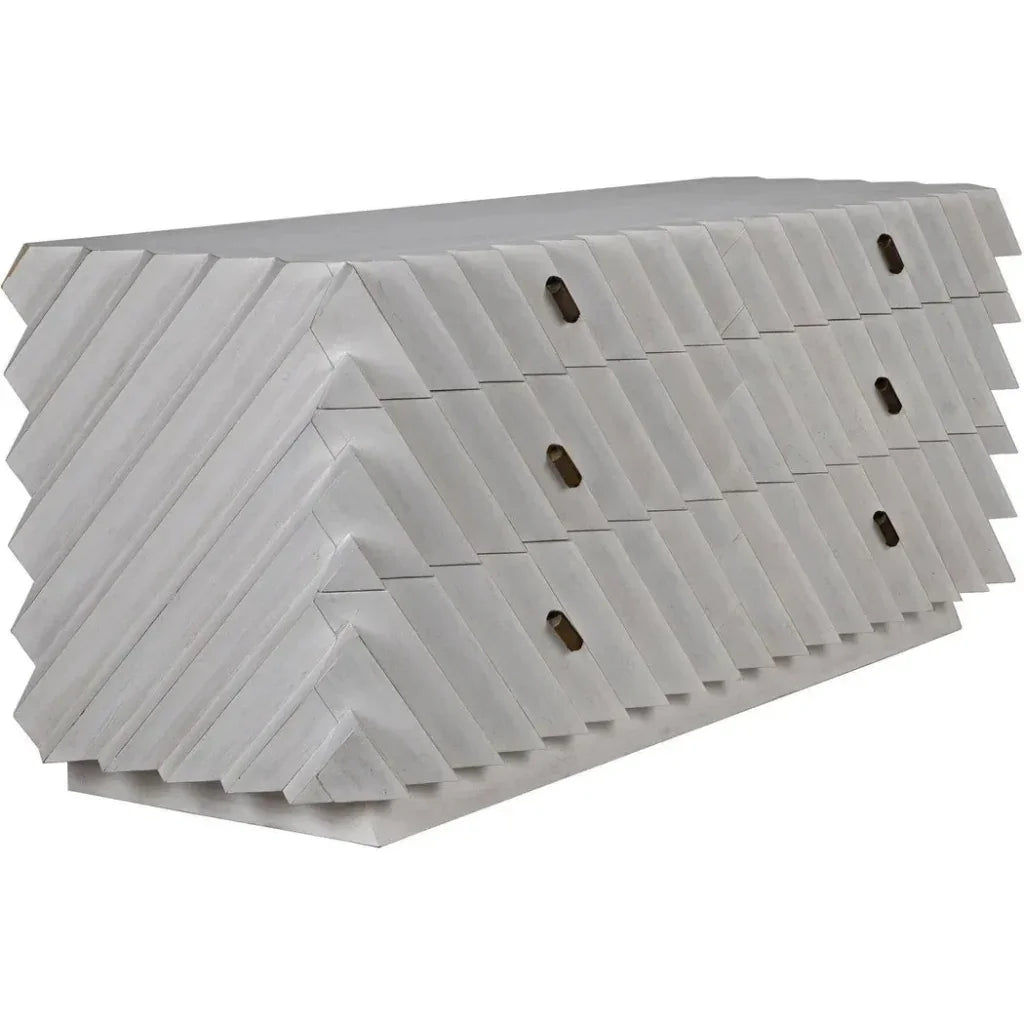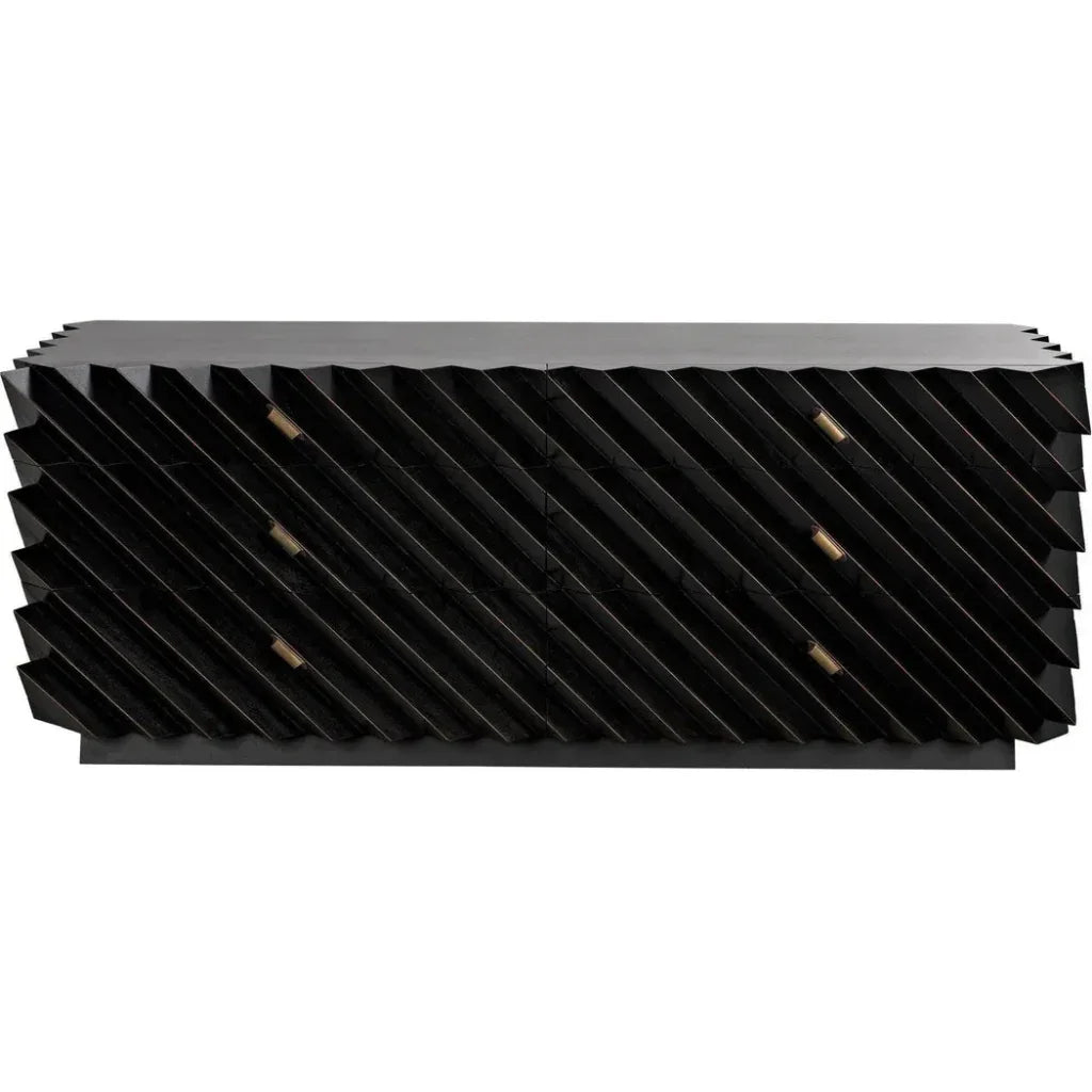 Expertly crafted from premium mahogany and veneer, the Hikaru Wood Dressers offer a perfect balance of bold design and practical function. The Black version features high relief diagonal ribs and a hand rubbed finish with golden undertones, giving it a dynamic industrial character and graphic appeal. In contrast, the White Wash version emphasizes rustic charm with a clean finish and elegant brass pulls. Both versions provide ample storage within their generous dimensions and showcase artisanal craftsmanship through every detail, making them striking additions to any bedroom space.
