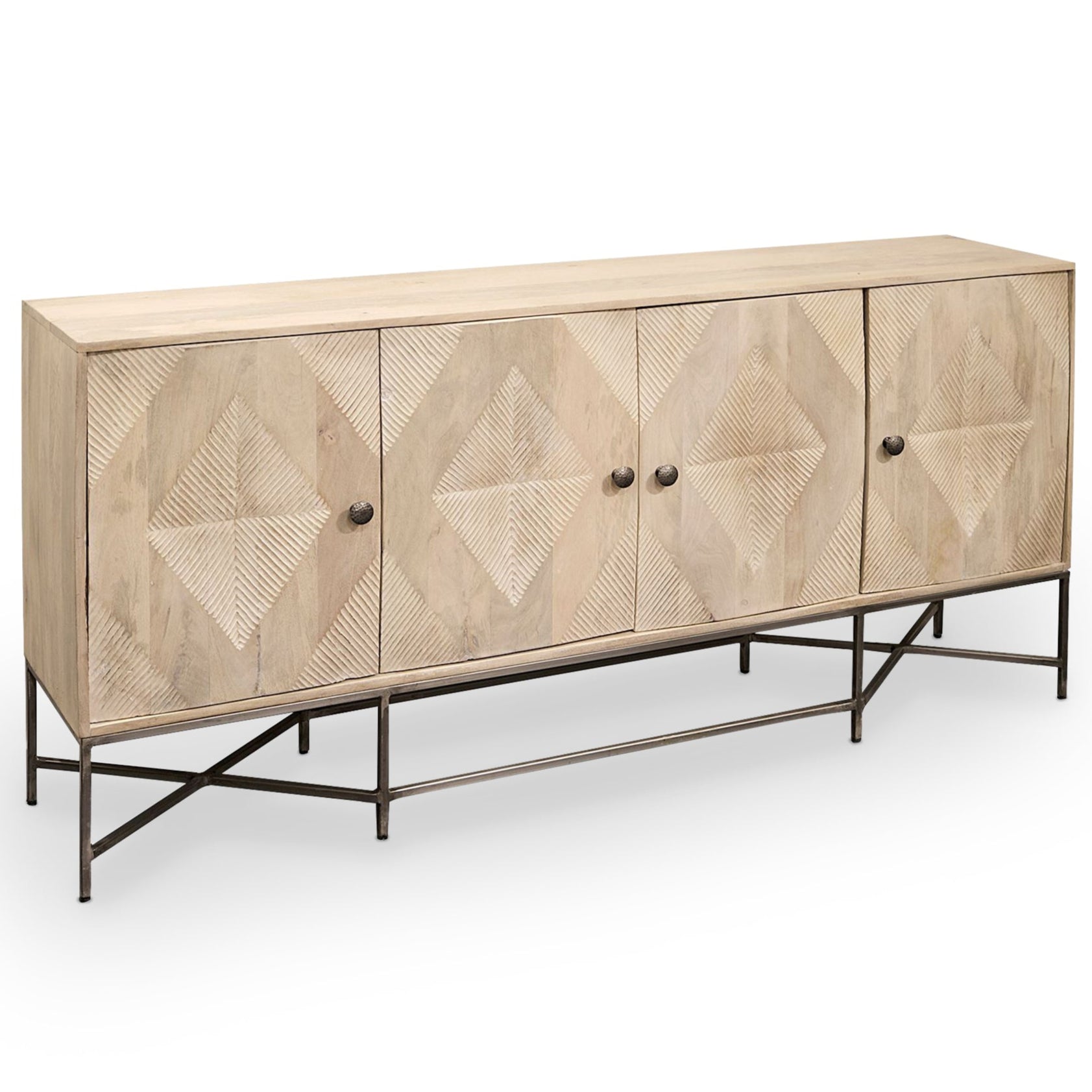 - The four doors on this exquisite sideboard don an intricately carved, argyle pattern which is guaranteed to draw attention to the piece in any space and setting.