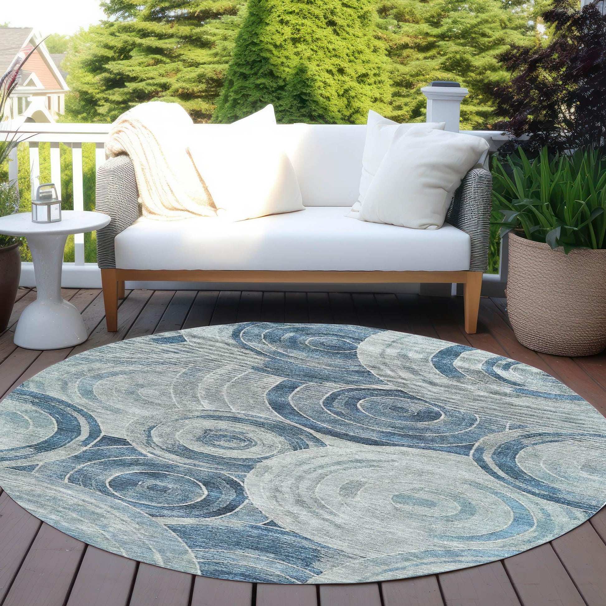 The Jaelain Blue Washable Indoor-Outdoor Rug offers a perfect blend of style and practicality for any space. Its unique circles within circles pattern adds a dynamic touch, bringing a sense of movement and flow to your decor. This geometric design is both modern and classic, making it an excellent addition to transitional spaces. The blue hue complements a variety of color schemes, enhancing the overall aesthetic of your home.
