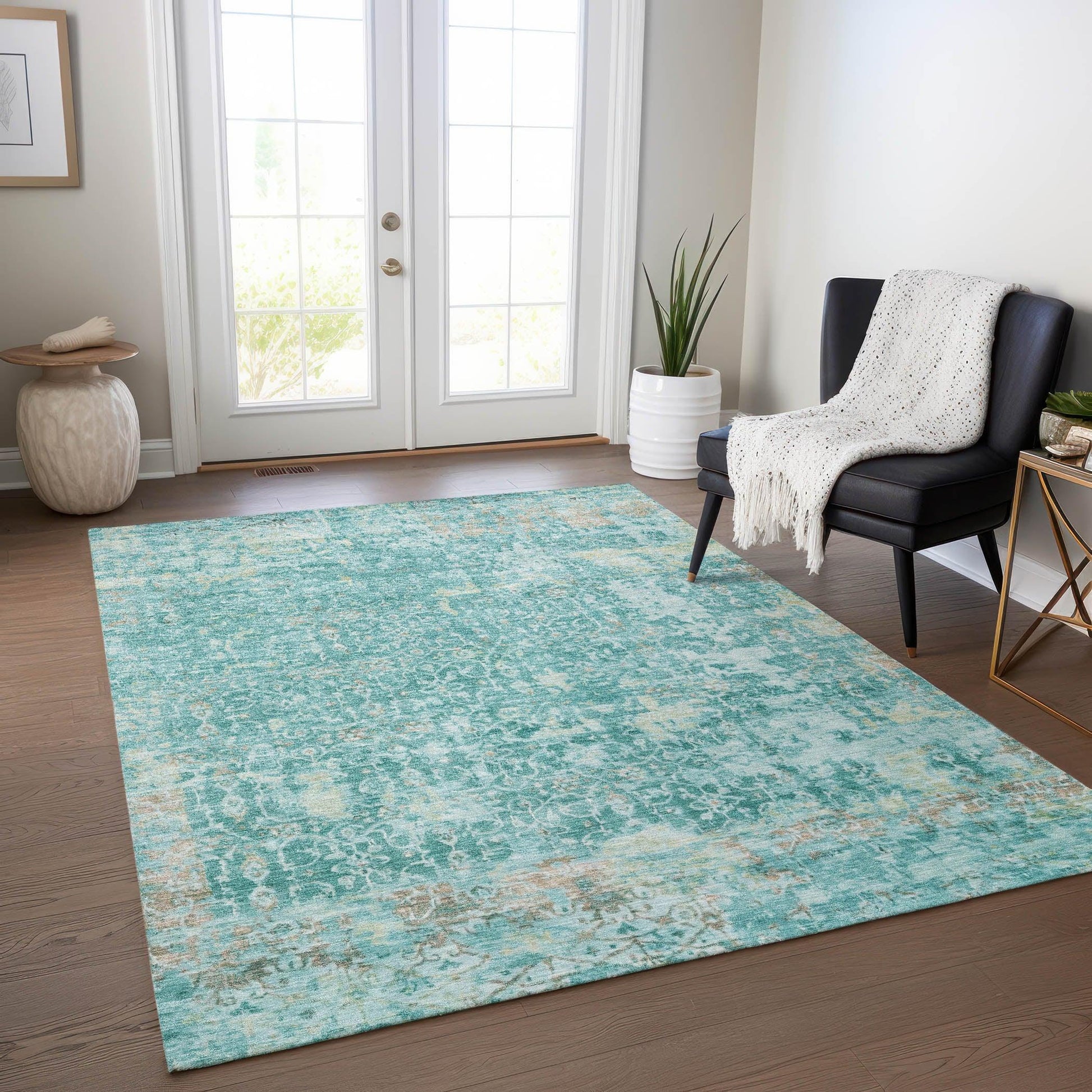Jaelara Teal Washable Indoor-Outdoor Rug