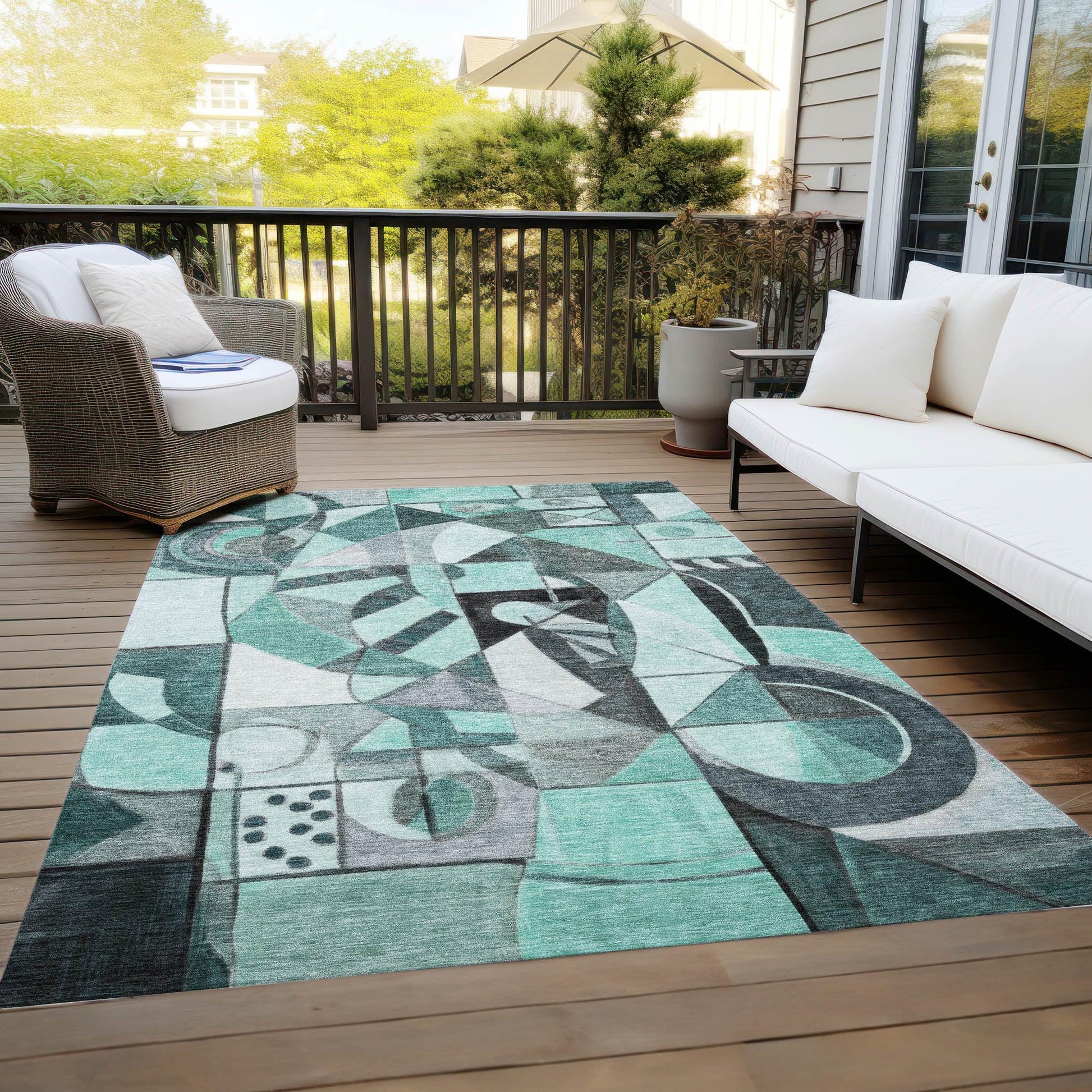 Jaelius Teal Washable Indoor-Outdoor Rug