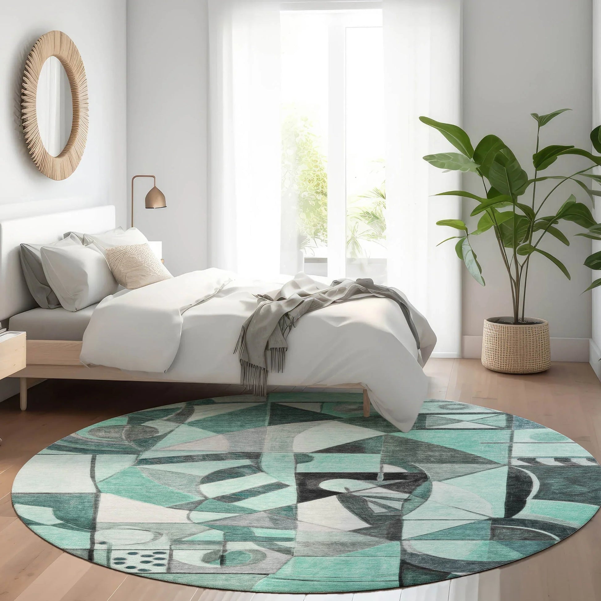 Jaelius Teal Washable Rug Stylish Durable Outdoor Safe Features: