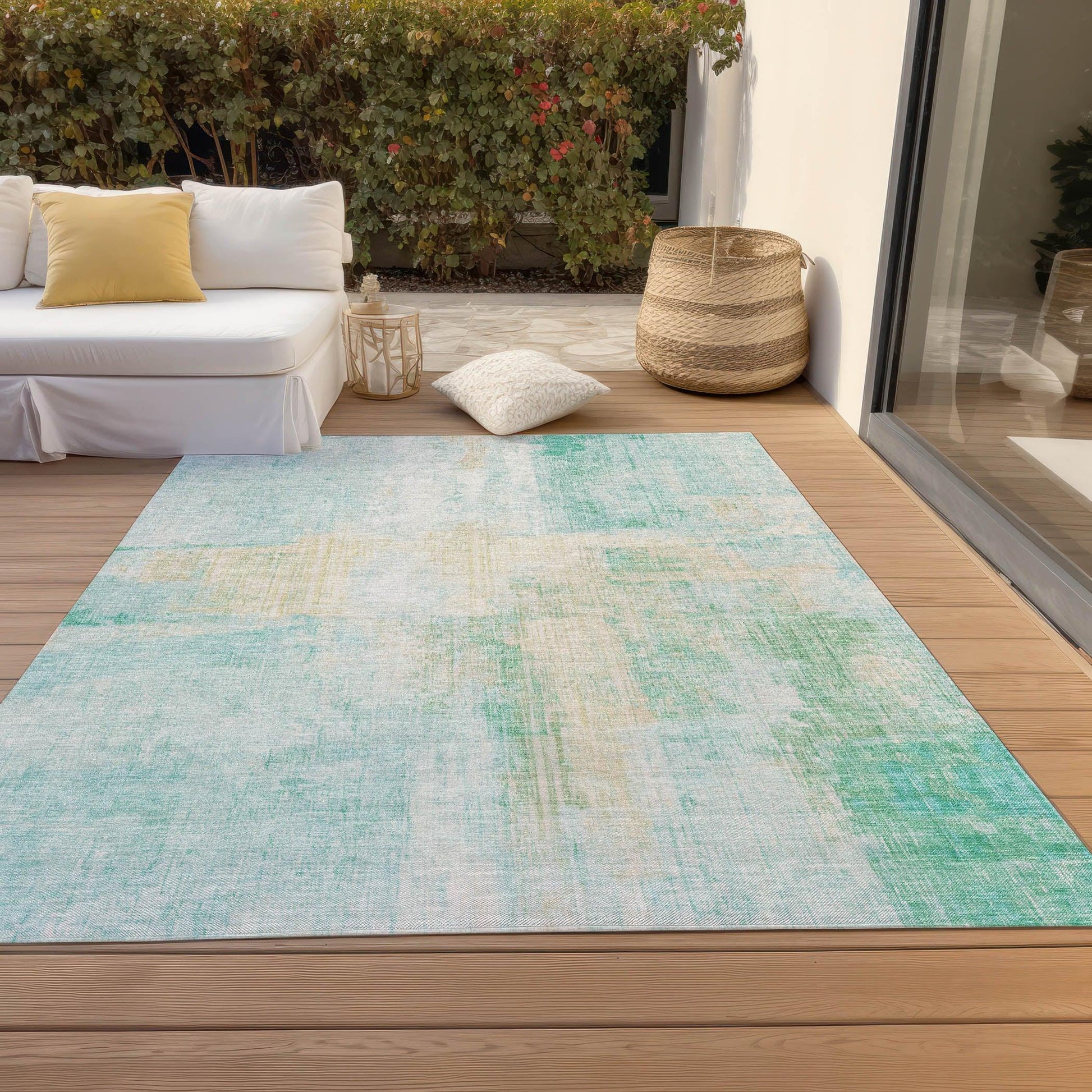 Jaelor Teal Washable Indoor-Outdoor Rug