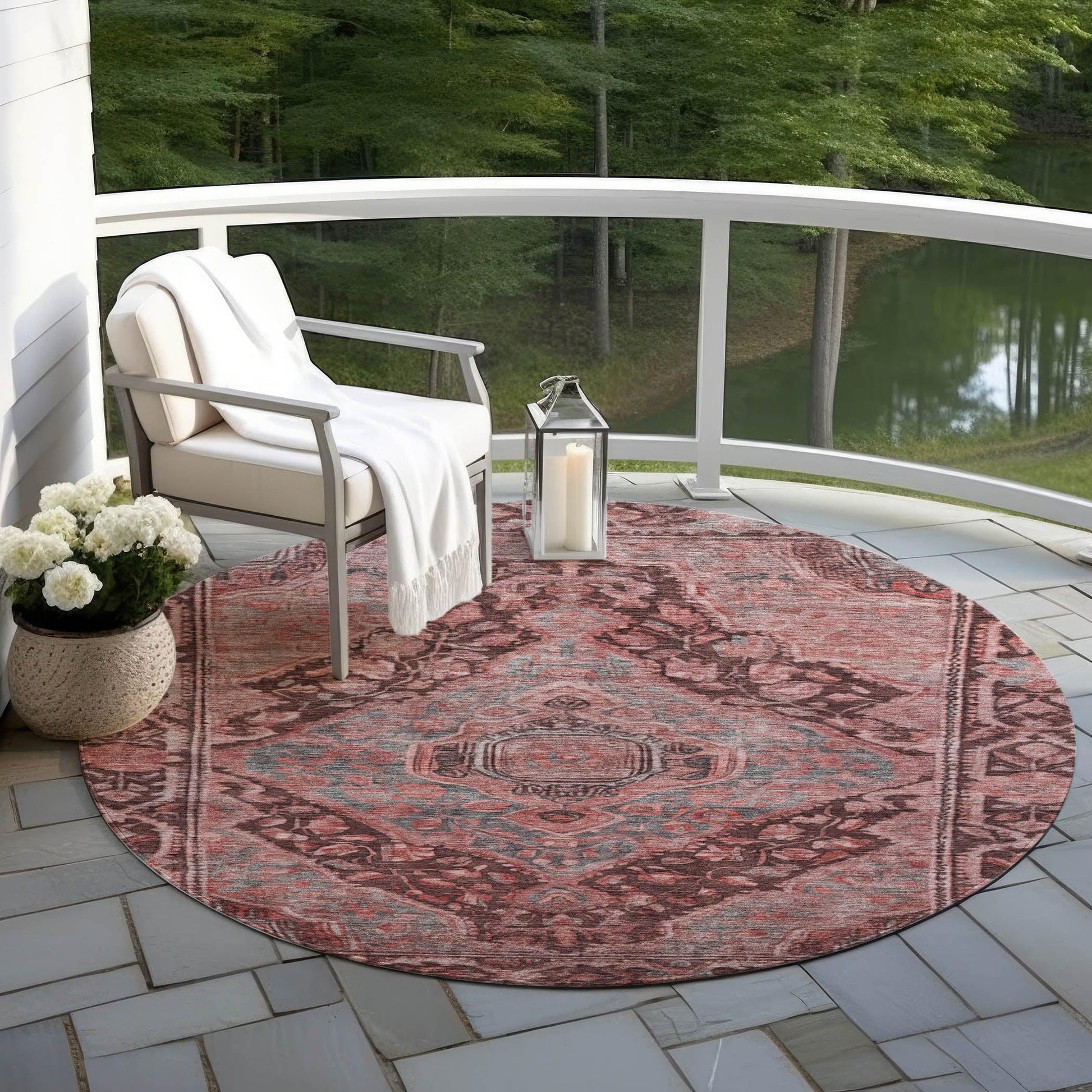 This vibrant rug brings a touch of elegance to any space with its eye-catching central medallion and bordered pattern. The intricate design adds depth and texture, making it a stunning focal point in both formal and casual settings. The orange hue offers a splash of color that complements a variety of decor styles. Perfectly suited for both indoor and outdoor use, this rug is UV-stabilized to withstand elements while maintaining its aesthetic appeal.