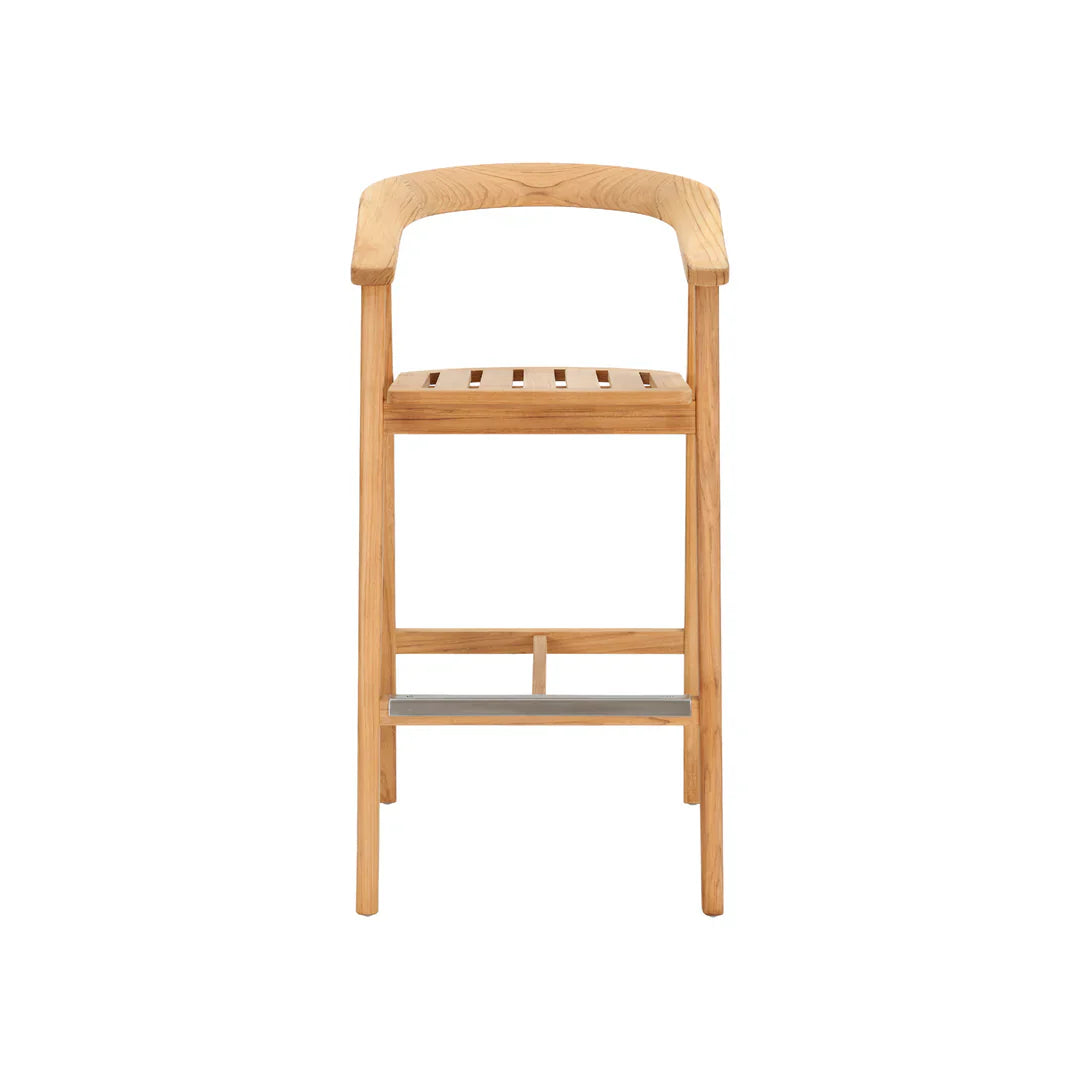 The La Costa square Bar Dining Set brings a touch of mid-century charm to any outdoor space. Made from high-quality teak wood, this set includes a bar-height table and two armchairs, offering elegance and comfort. The table's sleek design, combined with the gently curved armchairs, creates a welcoming setting perfect for intimate gatherings. Whether placed on a small balcony or beside a pool, this set is designed to enhance outdoor living with style and grace.