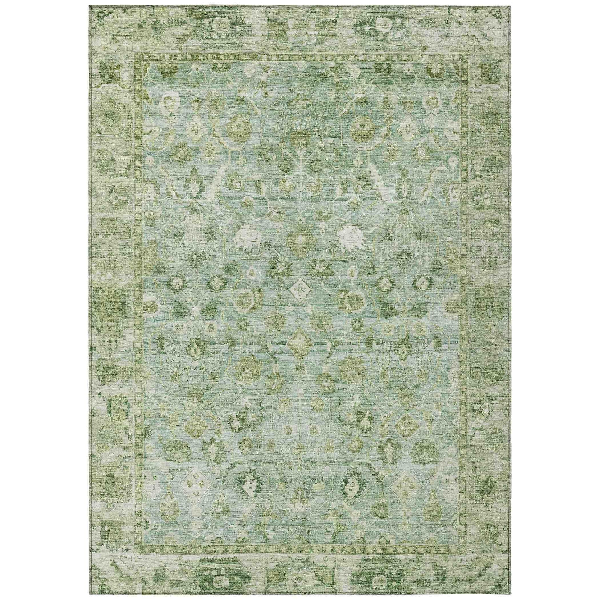 The Laeel Aloe Washable Rug brings a touch of elegance and practicality to any space. With its understated border featuring small damask motifs and a global pattern, this rug adds a layer of cultural richness and timeless charm to your décor. Whether placed indoors or outdoors, its versatile design makes it a perfect addition to busy households, offering both style and durability. Its aloe color enhances the visual appeal, making it a great fit for various settings.