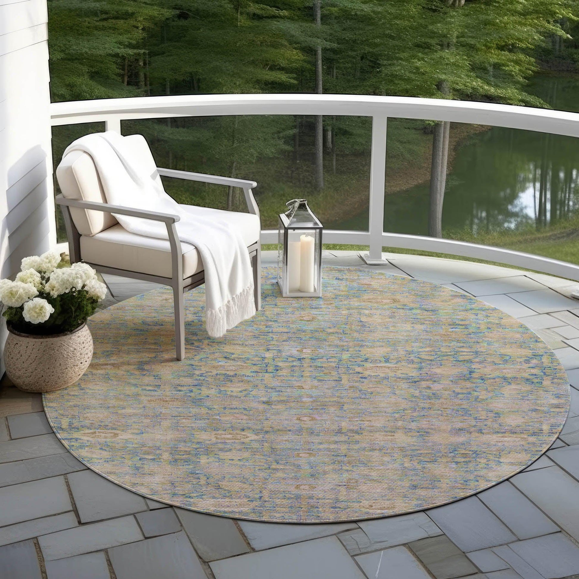 Faded, distressed motifs bring a vintage, old-world charm to this rug, adding character and depth to any space. The modern pattern introduces a fresh twist, creating a striking contrast between past and present. With its transitional style, this rug seamlessly fits into rooms that blend contemporary and classic design elements. It's designed for both indoor and outdoor use, making it a versatile addition to any home.