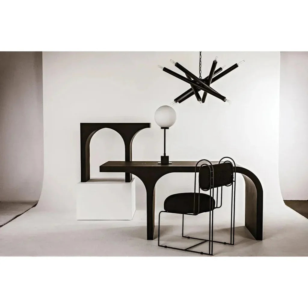 Discover a captivating fusion of luxury and futuristic design with the Lex Metal Chandelier, available in Antique Silver or Matte Black. Both versions showcase a dramatic starburst of metal tubes and small bulbs, expertly crafted and suspended by a sturdy metal chain. The Antique Silver finish adds a refined, sculptural elegance that shines as both art and illumination, while the Matte Black option features a bold, modern design with industrial appeal. Whether styled in a contemporary or classic interior, these 12-bulb chandeliers bring sculptural drama and visual brilliance to any room, day or night.