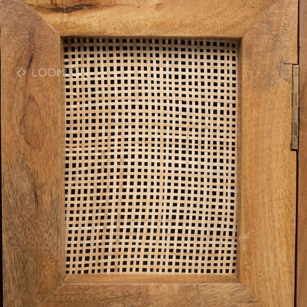 Enhance your living space with the timeless elegance of this sideboard. Its natural wood finish brings a warm, inviting feel to any room. The woven cane accents on the four doors add a touch of texture and interest, creating a stylish focal point. With its classic rectangular shape and thoughtfully selected materials, this piece is both beautiful and practical, fitting seamlessly into a variety of home decors. The sideboard offers ample storage with its four-door design, providing a convenient place to keep your essentials organized while maintaining a clean, clutter-free environment. The gold knobs add a subtle touch of glamour, enhancing the overall aesthetic.