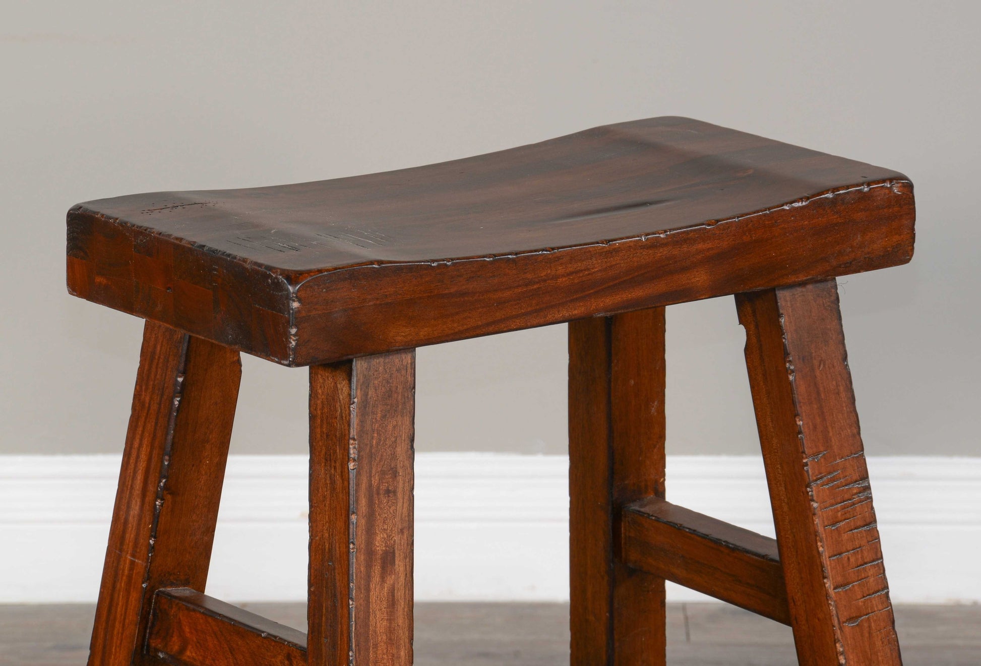 Enhance your home with the Marina Saddle Counter Stools Set, perfect for adding casual seating. These stools feature a stylish shabby chic design with a scooped saddle seat to ensure comfort. Crafted from solid mahogany, they highlight beautiful grain details and are finished with a distressed black sand look for a touch of elegance. The counter stools are designed with splayed legs for stability and come with a horizontal wooden support to rest your feet. Ideal for kitchens and casual dining areas, they blend seamlessly into any space, offering both style and function. Assembly is required for these quality stools.