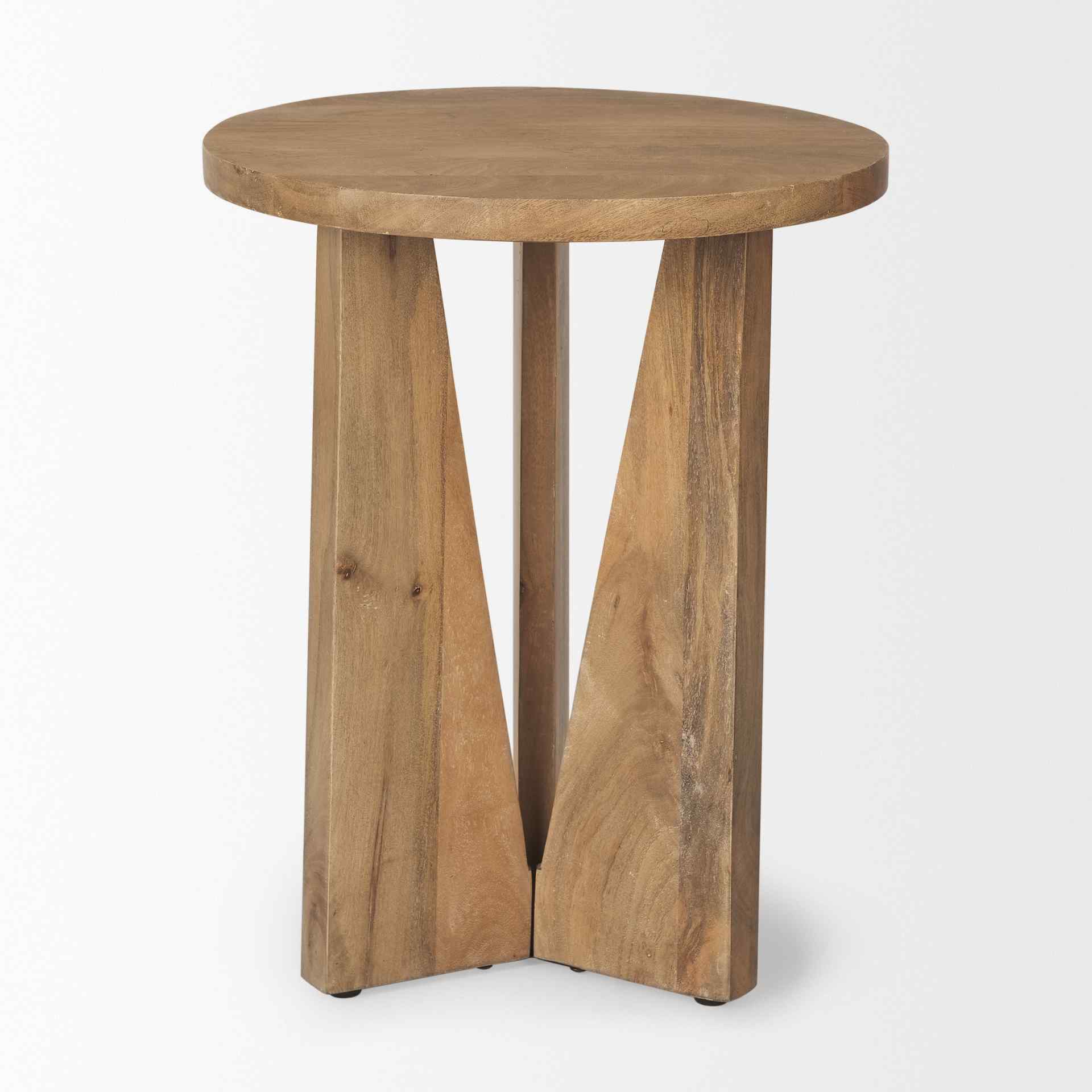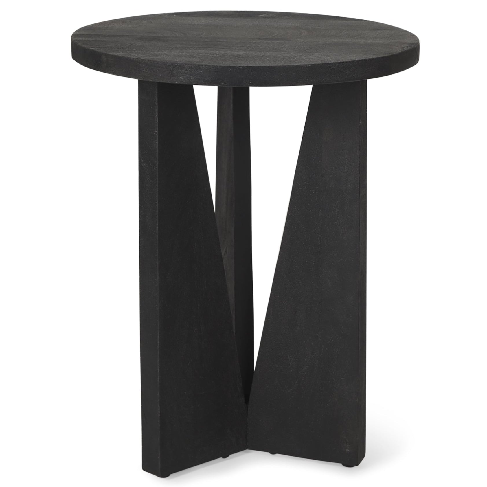 This wooden round accent table is an elegant addition to any living space. Crafted with a unique design, its round tabletop rests on three angled legs, forming a beautiful and slender silhouette. The striking black and brown finish enhances the natural grain and adds a touch of sophistication to the table. Its compact size makes it ideal for small spaces, yet it still offers ample surface area for displaying decor, holding drinks, or storing books.