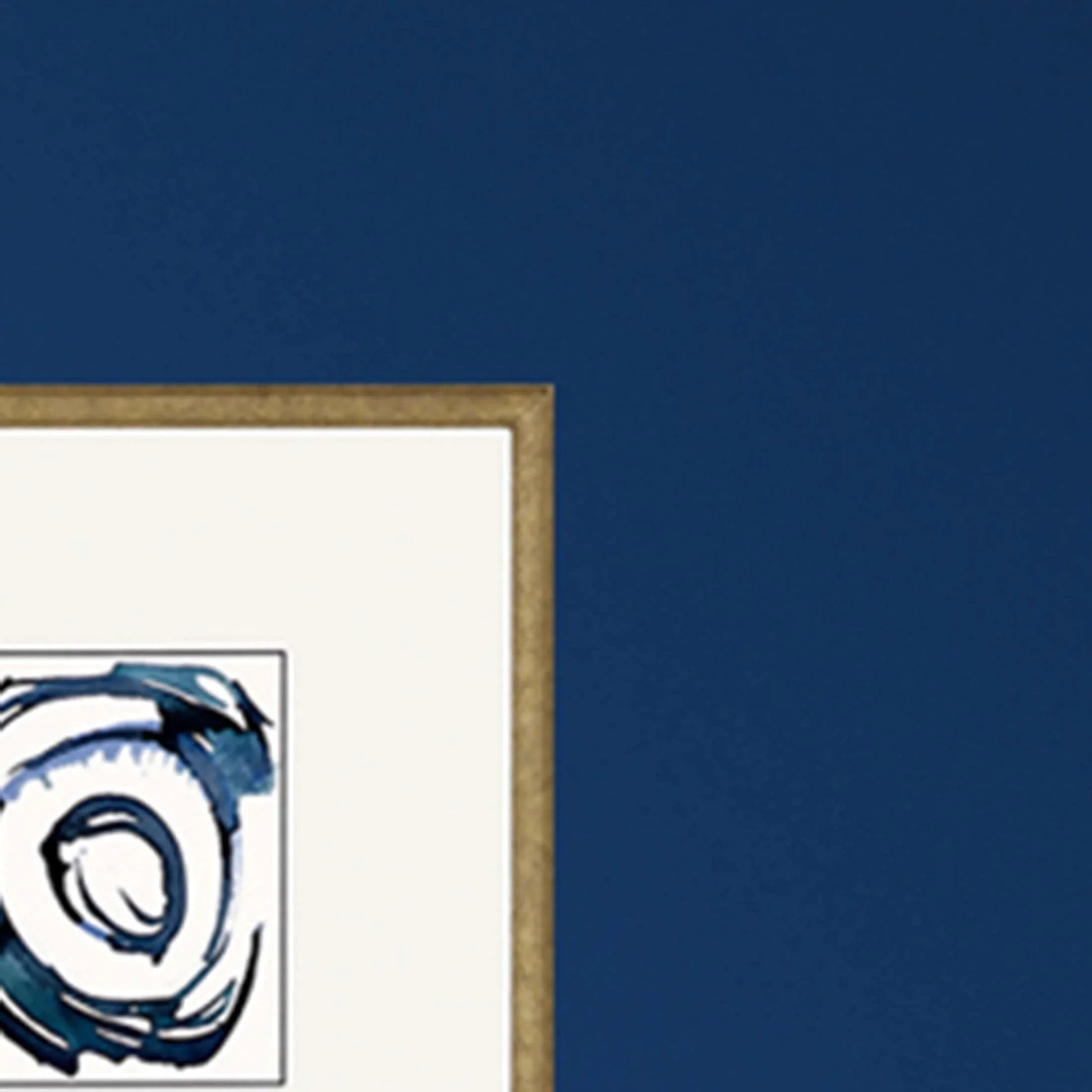 Transform your living space with the striking Mayhem II and I S/3 Contemporary Art Exclusive Glass Frame. This set of three abstract prints is designed to bring a modern touch to any room. Each piece showcases dark blue brushstrokes on a pristine white background, creating a captivating contrast that draws the eye. The prints are matted in white, enhancing their visual appeal and depth. They are encased in a sophisticated antique gold wood frame with an embossed weave design, adding a touch of elegance and refinement to your decor.
