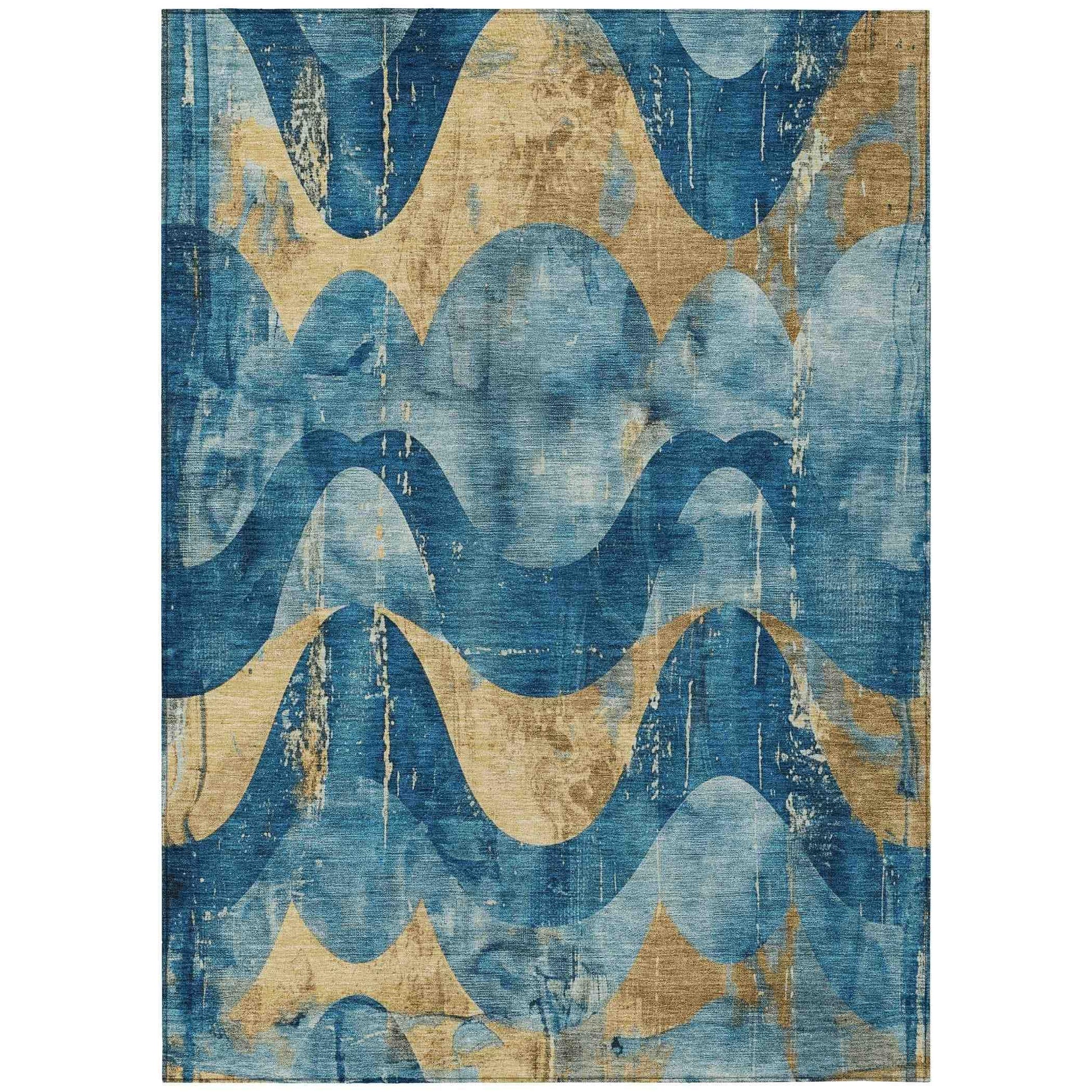 Sweeping waves and layered details make this rug a striking addition to any space. Its dynamic and flowing design adds depth and dimension, seamlessly fitting into rooms with a mix of contemporary and classic décor. The swirling pattern is both artistic and balanced, providing a unique touch that enhances your home's aesthetic. Whether used indoors or outdoors, this rug is crafted to withstand the elements, thanks to its UV-stabilized material that minimizes color loss over time.