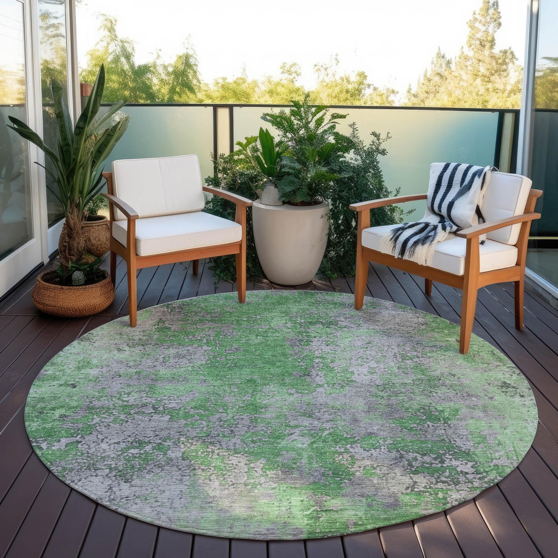 This rug’s faded pattern, designed to mimic natural wear, adds a relaxed, understated elegance to your space. The soft, distressed effect brings texture and visual interest, while the transitional style allows it to blend seamlessly with both contemporary and traditional designs. Crafted from durable polyester, it’s designed for both indoor and outdoor use, making it a versatile choice for any area. Its green color complements a wide range of décor styles, providing a fresh and inviting look to your home.