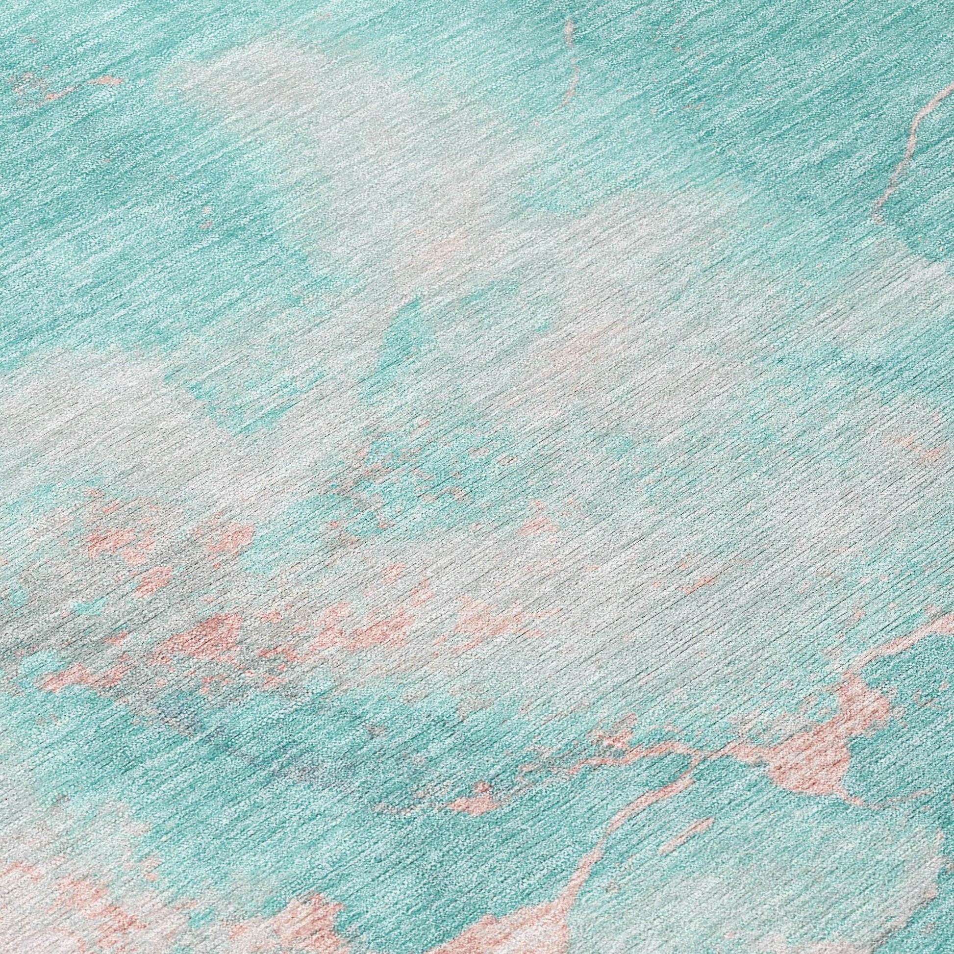 Naelius Teal Rug Washable Indoor-Outdoor Stylish Design Features: