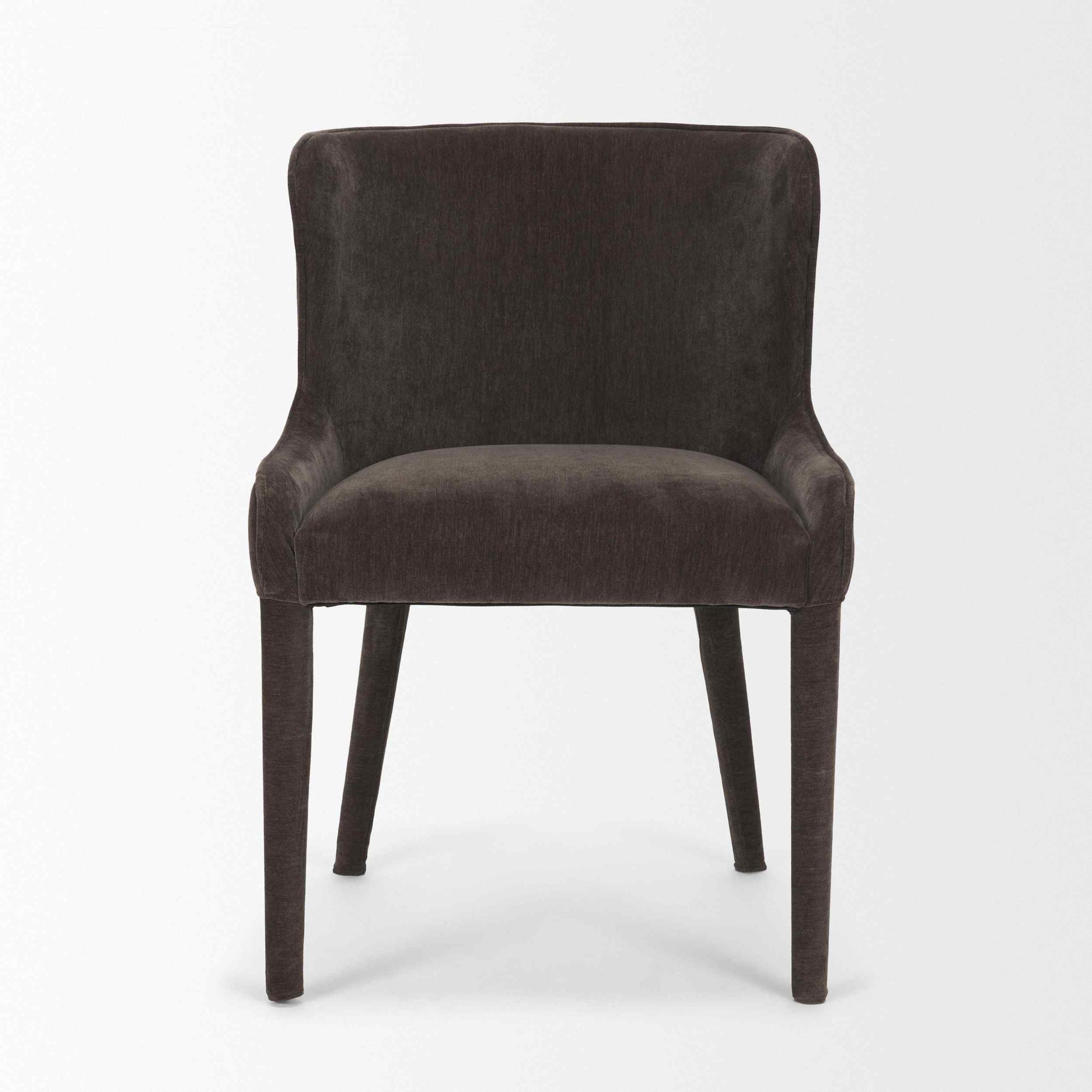 The Nolan Dining Chair adds a touch of elegance to any dining space with its sculptural design and soft lines. Upholstered in rich charcoal chenille, it offers a sleek and modern look. The chair's armless silhouette and curved wingback provide a sophisticated balance, making it both stylish and comfortable. The eco-friendly fabric is made from 50% recycled polyester, ensuring long-lasting use and comfort. Its versatile design allows it to fit seamlessly into dining areas, offices, or as an accent piece. No assembly is needed, so it’s ready to be used right out of the box, enhancing your space with ease.