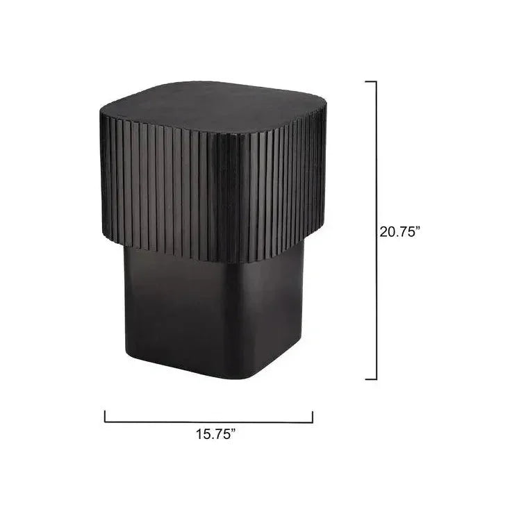 Inspired by European clockworks, the Notch Square Wood Table showcases clean, modern lines highlighted by richly textural ribbing around its top half. Expertly hand-carved from sustainably sourced mango wood, each table is a unique work of art. Available in White Bleach or Black finishes, it serves as a versatile accent piece whether styled alone or grouped together for a striking statement. With its distinctive ribbed detailing and artisan craftsmanship, this table brings texture, elegance, and functionality to any space.