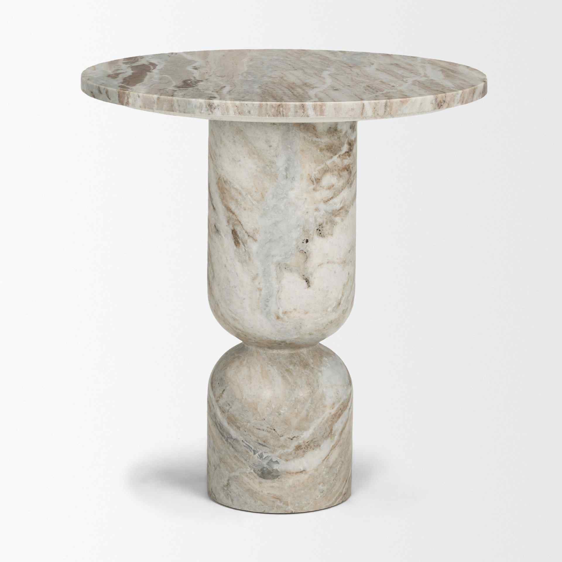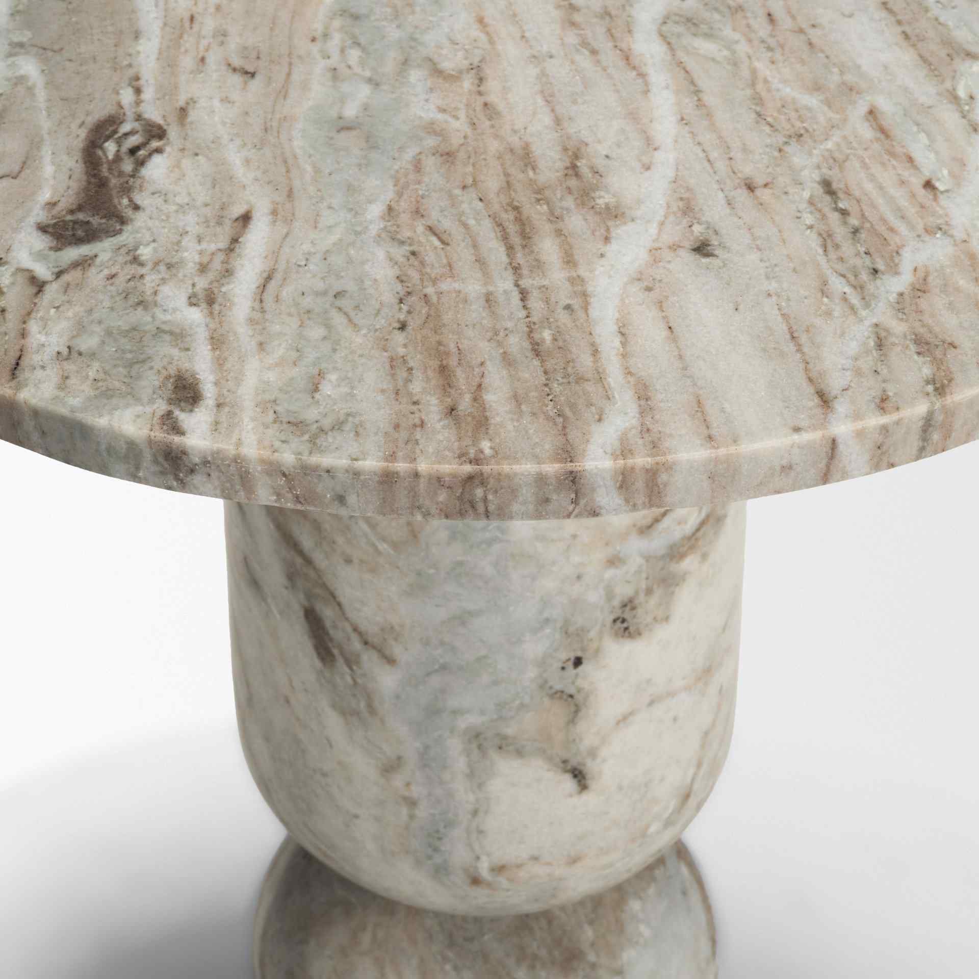 The Nylah Pink Marble Table is an elegant piece that adds a touch of luxury to any room. Crafted from solid pink marble, this table features a round top and a bold, geometric base that makes a statement. Its rich brown hue with natural gray veining adds depth and charm, making it an eye-catching focal point for any living space. Whether placed in an entryway or beside a seating area, its sculptural design draws attention. The marble’s natural variations ensure each table is unique, offering a personalized touch to your decor. Elevate your home with this stunning accent table.